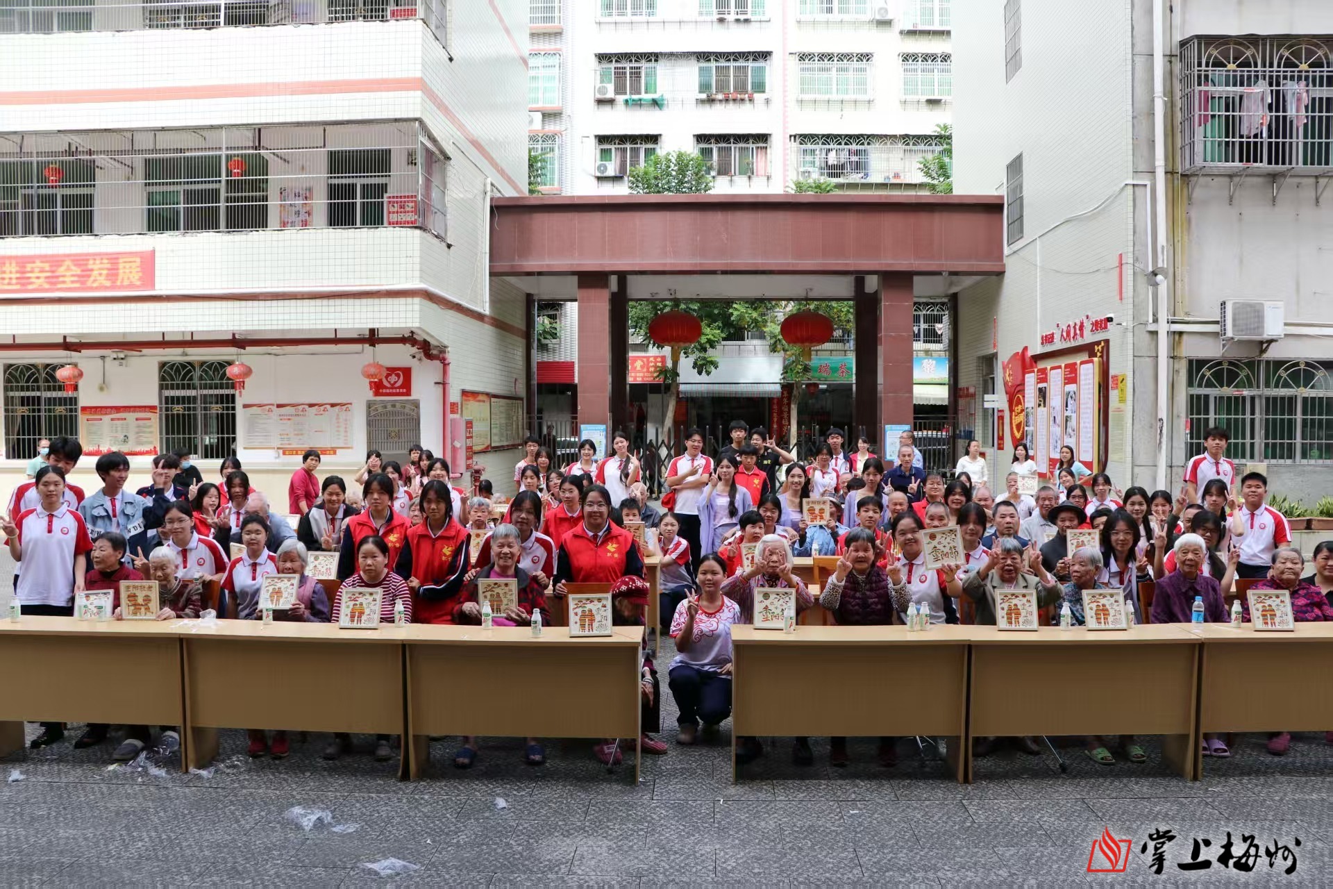 活动伊始,大埔县第二实验幼儿园教育集团带来了幼儿舞蹈和纸杯游戏;随后,大埔县西岭实验学校的少先队员朗诵,共青团员歌唱校歌、挥毫送“福”接连上演;大埔县田家炳高级职业学校的青年为老人们带来舞狮表演。活动在师生、老人们同做手工中落下帷幕。现场氛围热烈,掌声笑声不断。