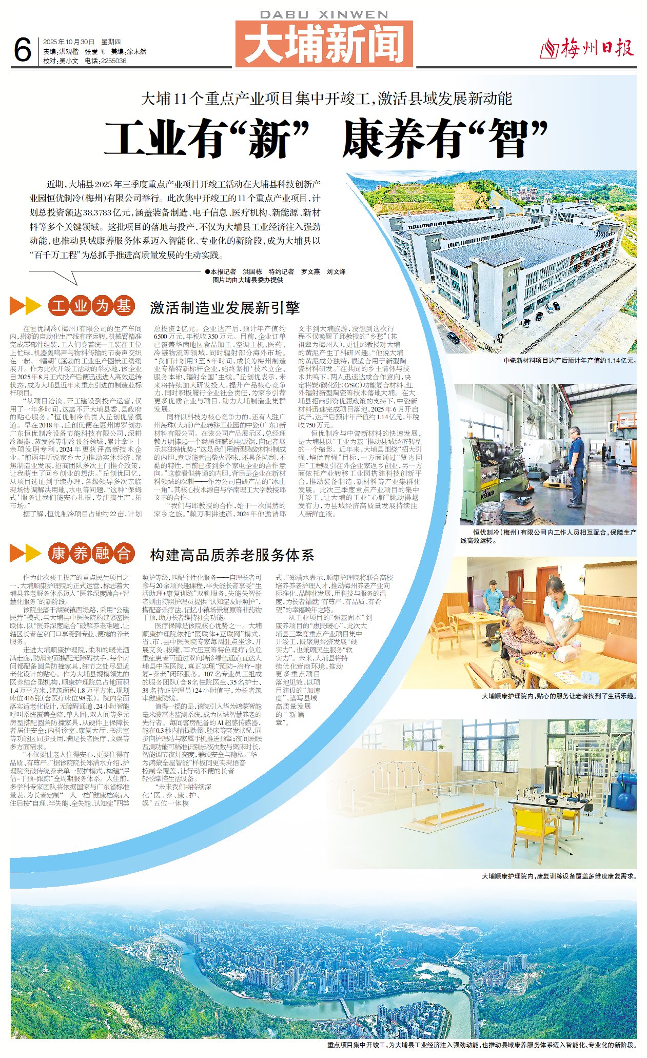 重点项目集中开竣工,为大埔县工业经济注入强劲动能,也推动县域康养服务体系迈入智能化、专业化的新阶段。