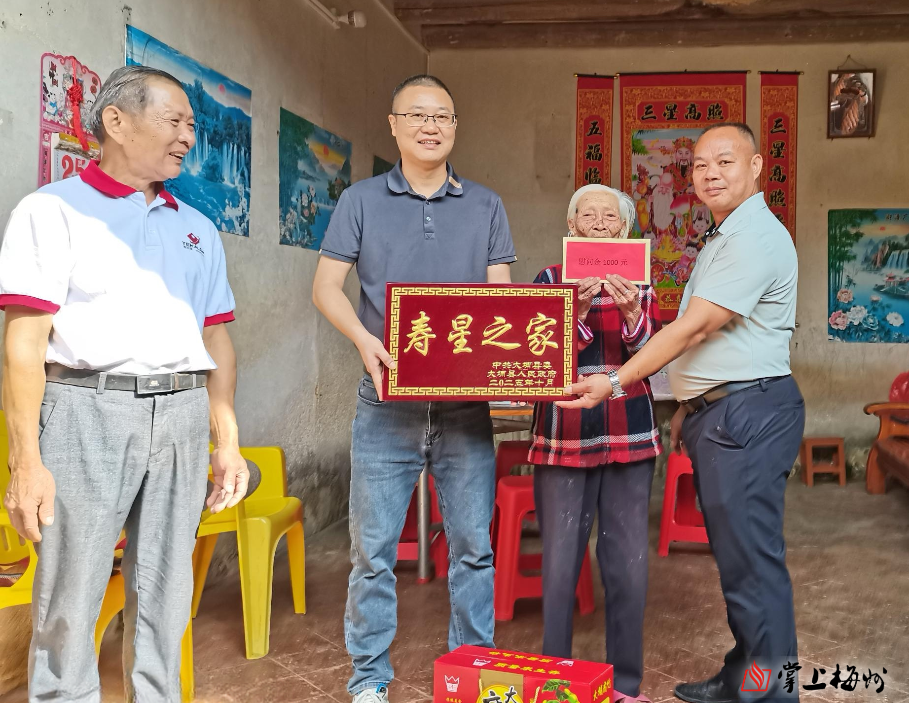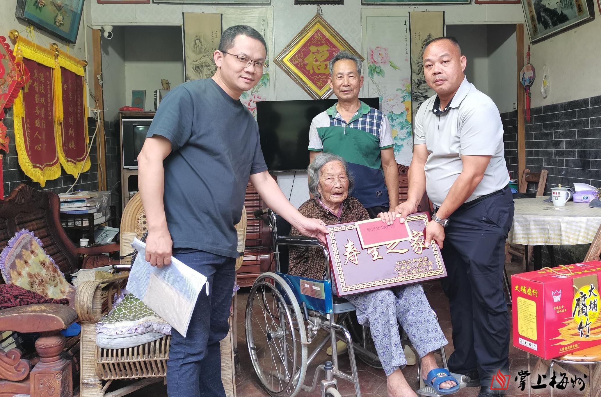 掌上梅州讯 近日,大埔县大麻镇社会工作服务站联合镇党委政府开展“情暖重阳 福寿绵长”重阳庆寿系列活动,对16名百岁老人进行入户走访慰问,颁寿匾、奉寿金、赠寿礼,让他们在传统节日里感受关怀,营造尊老敬老爱老的社会风尚。
