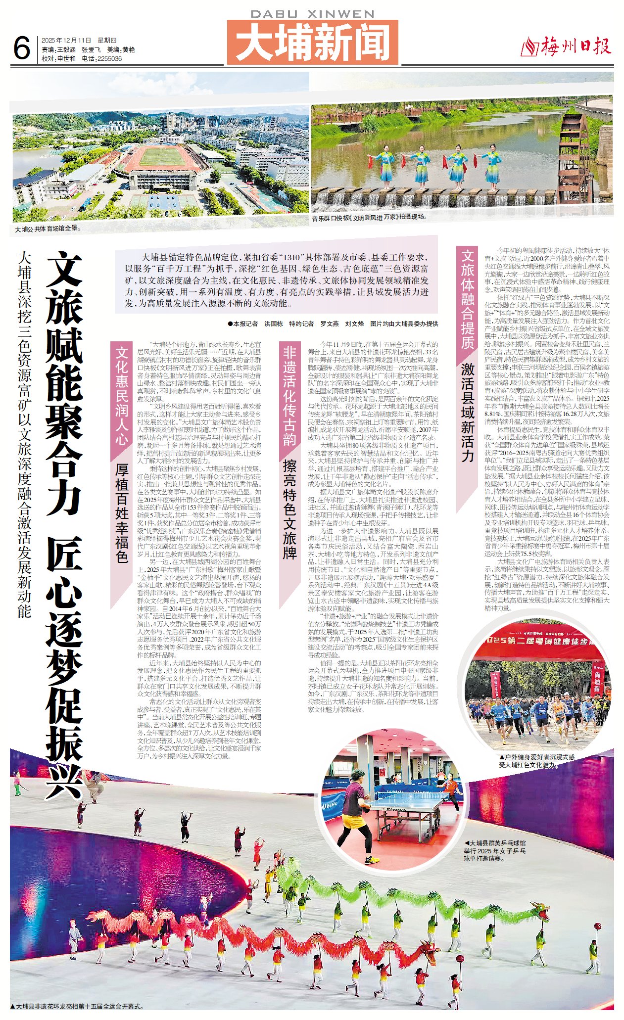 大埔县锚定特色品牌定位,紧扣省委“1310”具体部署及市委、县委工作要求,以服务“百千万工程”为抓手,深挖“红色基因、绿色生态、古色底蕴”三色资源富矿,以文旅深度融合为主线,在文化惠民、非遗传承、文旅体协同发展领域精准发力、创新突破,用一系列有温度、有力度、有亮点的实践举措,让县域发展活力迸发,为高质量发展注入源源不断的文旅动能。