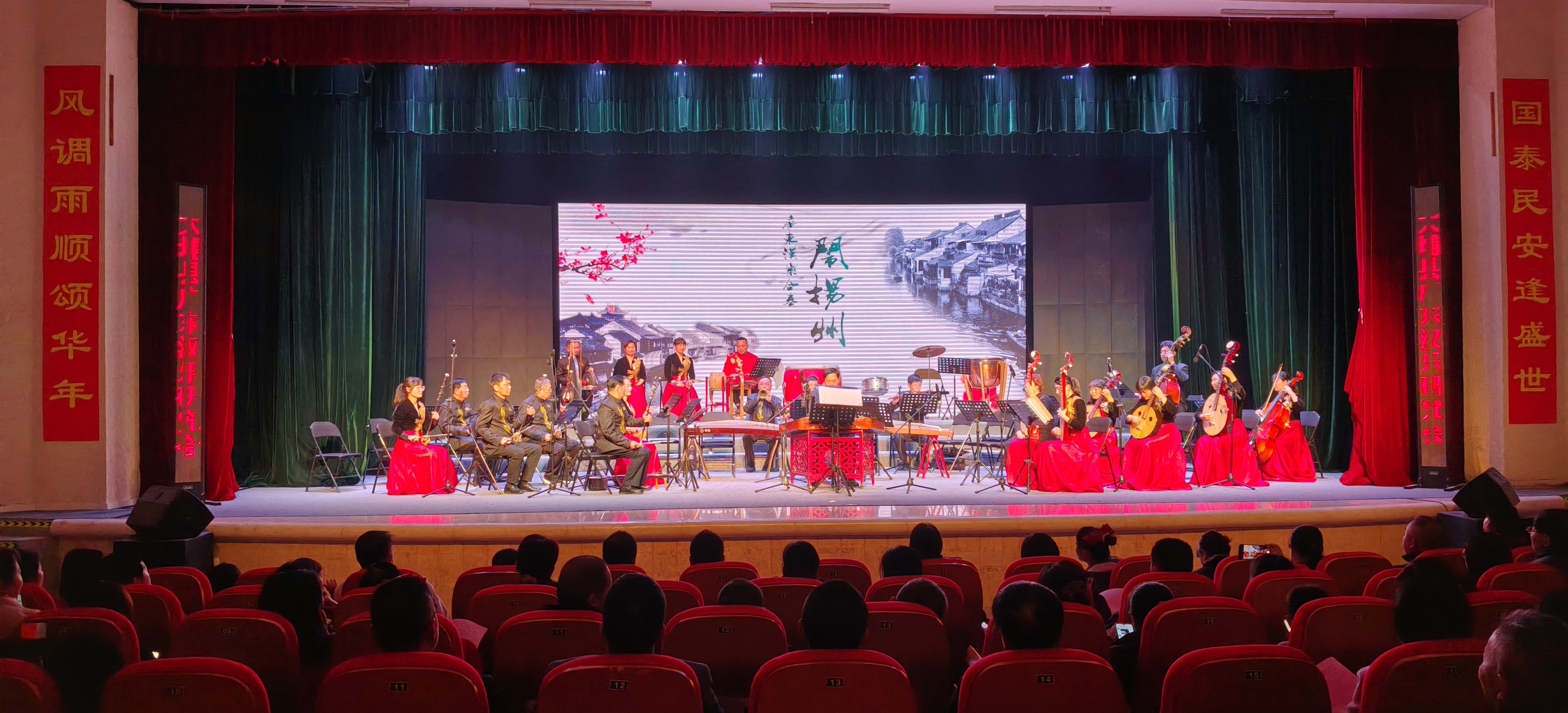 音乐会在梅州市民族管弦乐学会师生合奏《将军令》中拉开序幕,气势恢宏的节奏瞬间点燃全场热烈的氛围。《摘金柚》《闹扬州》《落地金钱》《平沙落雁》等传统广东汉乐、《红色交通线》选段“心潮翻腾满胸膛”、《客家之子田家炳》选段“本以为我是大海一滴水”等广东汉剧、《出水莲》《渔舟唱晚》《烟雨唱扬州》等筝曲精彩纷呈。最后,梅州市民族管弦乐学会、梅州广东汉乐协会以热烈的旋律共同奏响《锦上添花》向现场观众致以新年最美好的祝福将活动推向高潮。