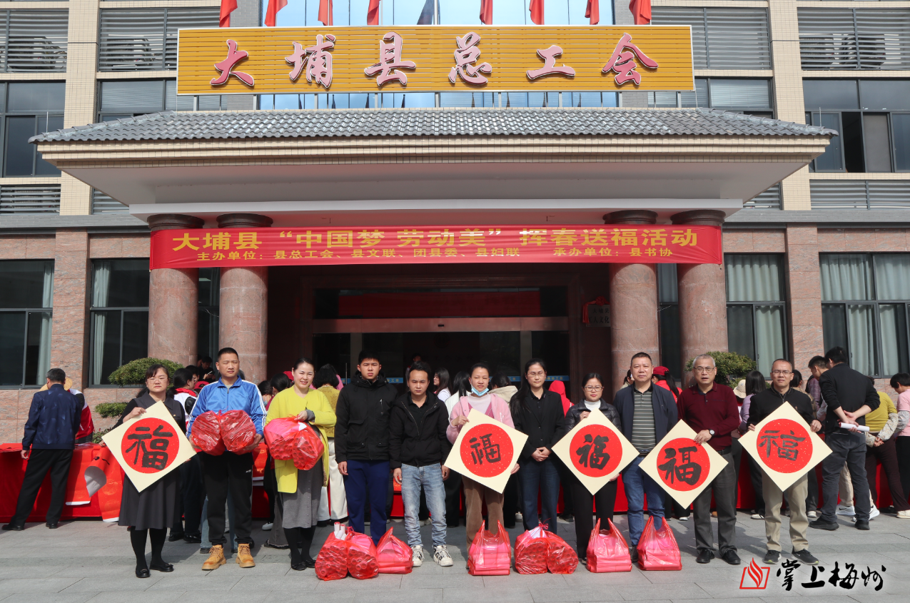 掌上梅州讯 1月28日,大埔县 “中国梦 劳动美”挥春送福活动在大埔县工人文化宫、工会驿站举办,吸引了数百名职工群众踊跃参加。