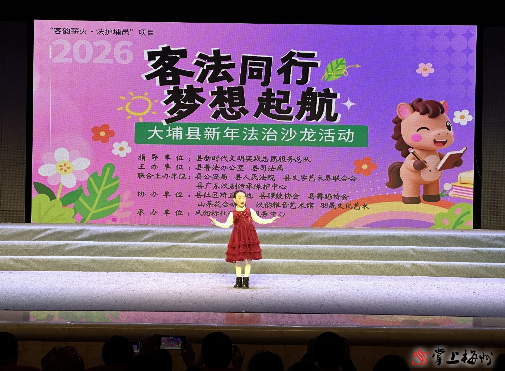 掌上梅州讯 1月31日,大埔县普法办公室、大埔县司法局联合大埔县公安局、大埔县人民法院、大埔县文联、大埔县广东汉剧传承保护中心等单位,在大埔县城田家炳演艺中心翰林剧场举办大埔县“客法同行·梦想启航”新年法治沙龙活动。活动通过一系列生动活泼、寓教于乐的环节,将客家文化、新年寓意与法治精神深度结合,有效普及法律知识,增强群众的法治观念。