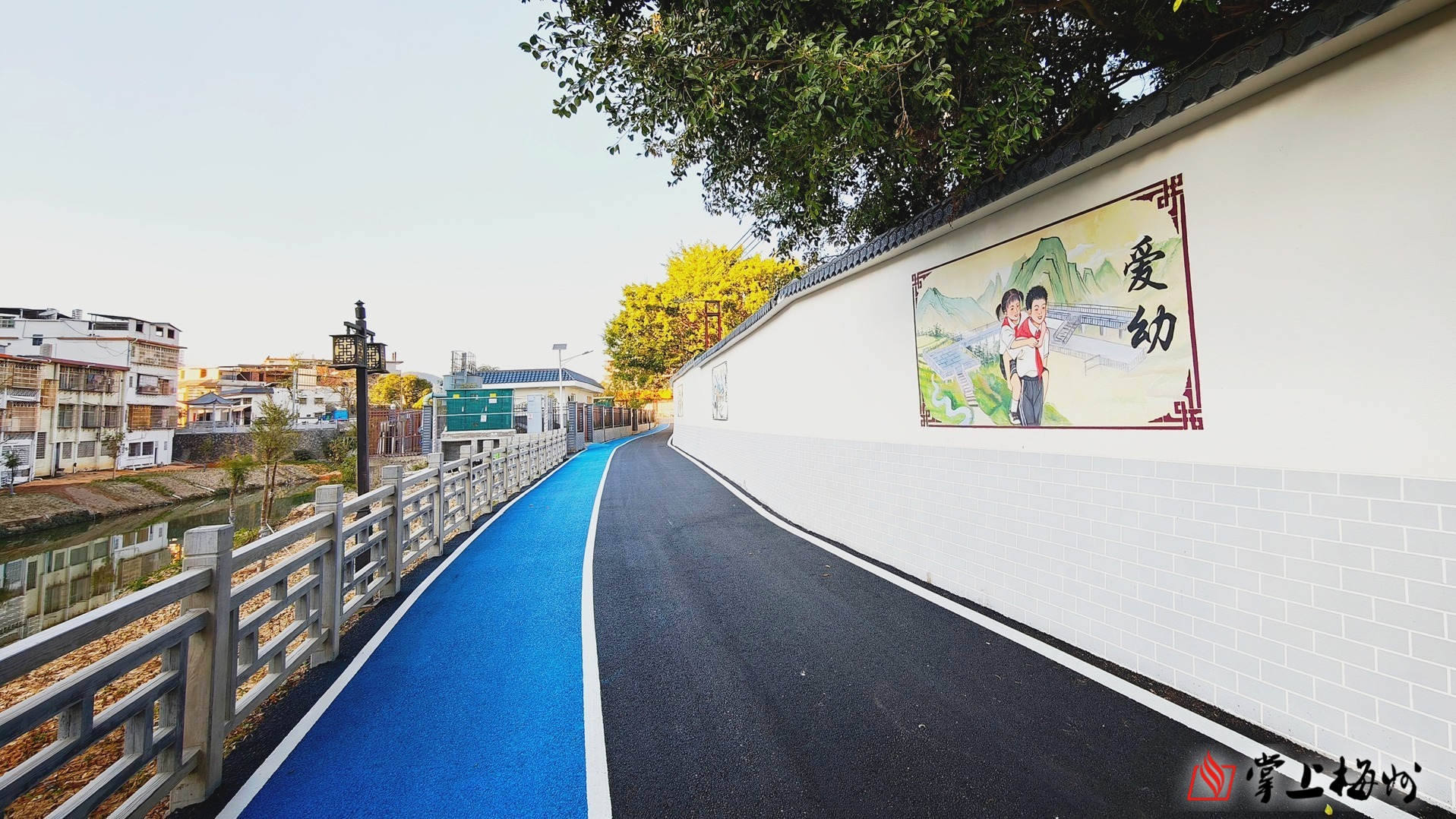 枫朗镇一河两岸的滨水步道,成为群众休闲健身的好去处。