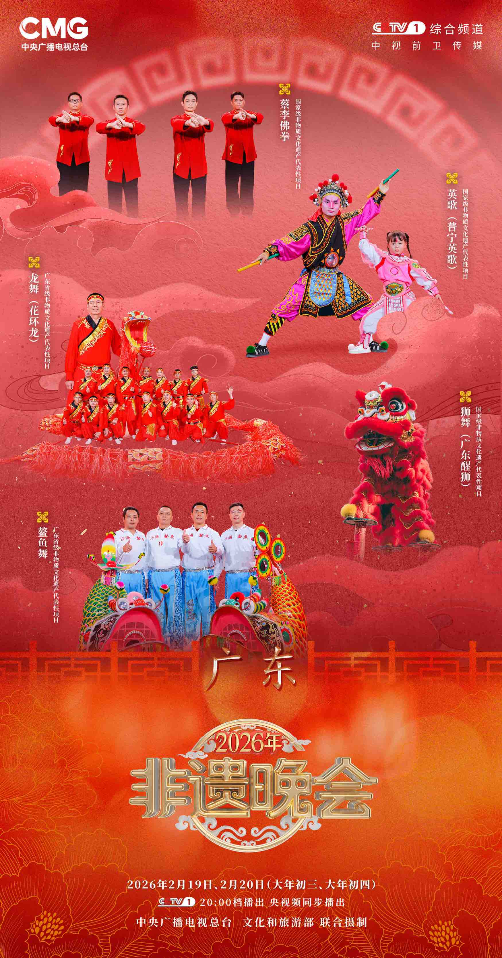 据介绍,作为央视2026年精品节目片单“文明华章”篇章的重点力作,《2026年非遗晚会》以“非遗万象 匠心迎春”为主题,全景式覆盖34个省级行政区,每个省区均设置独立篇章。节目汇聚了全国各地非遗瑰宝与匠心传承人,既有传统技艺的坚守,也有创新表达的突破,通过前沿舞台科技,从“非遗+”等多个角度诠释非遗的时代魅力。节目于大年初二、初三晚在央视综合频道黄金档播出。