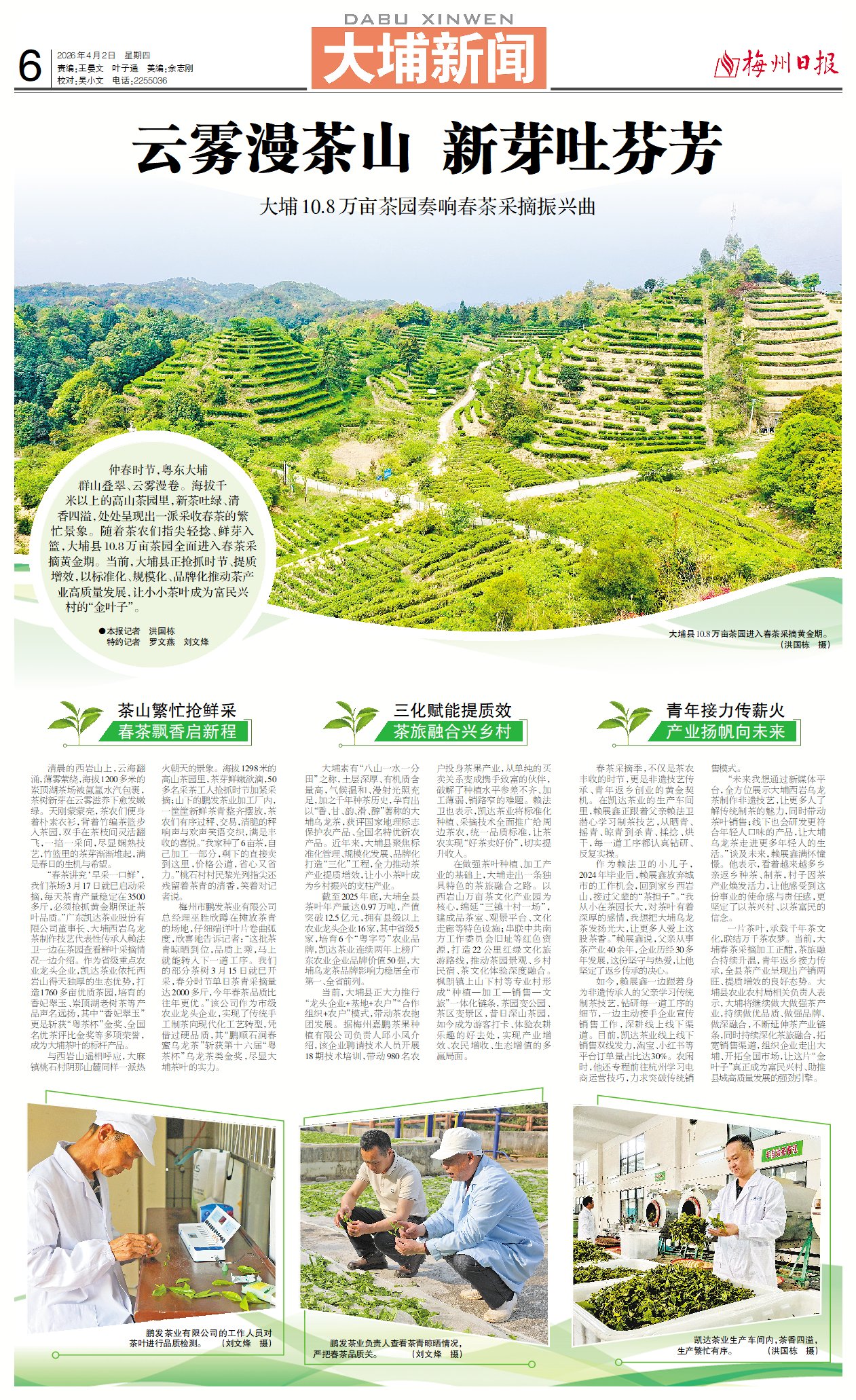 一片茶叶,承载千年茶文化,联结万千茶农梦。当前,大埔春茶采摘加工正酣,茶旅融合持续升温,青年返乡接力传承,全县茶产业呈现出产销两旺、提质增效的良好态势。大埔县农业农村局相关负责人表示,大埔将继续做大做强茶产业,持续做优品质、做强品牌、做深融合,不断延伸茶产业链条,同时持续深化茶旅融合,拓宽销售渠道,组织企业走出大埔、开拓全国市场,让这片“金叶子”真正成为富民兴村、助推县域高质量发展的强劲引擎。