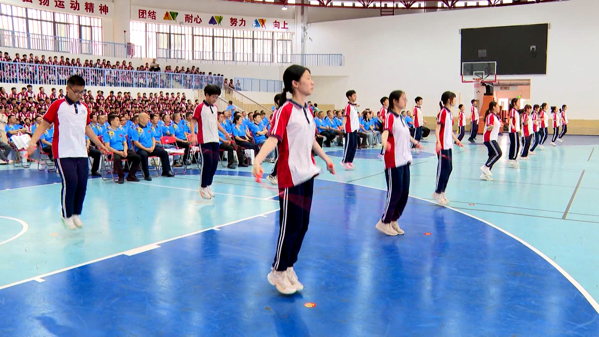 随后,学生代表进行了精彩的跳绳演示,翻飞的彩绳与轻快的步伐,展现了该县青少年昂扬向上的精神风貌。技术裁判长也现场讲解了本届赛事的竞赛规则与智能评分标准,确保赛事的公平、公正、公开。