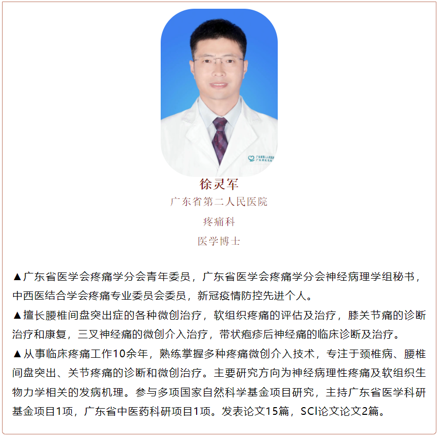 为推动疼痛专科的规范化诊疗,进一步提升疼痛相关疾病的诊疗能力,改善患者生活质量,服务基层百姓健康,广东省第二人民医院疼痛疾病治疗专家徐灵军博士将于3月19日、20日到大埔县人民医院开展技术指导,并在疼痛科坐诊、手术,让老区苏区群众就近就能得到省级优质的医疗服务。