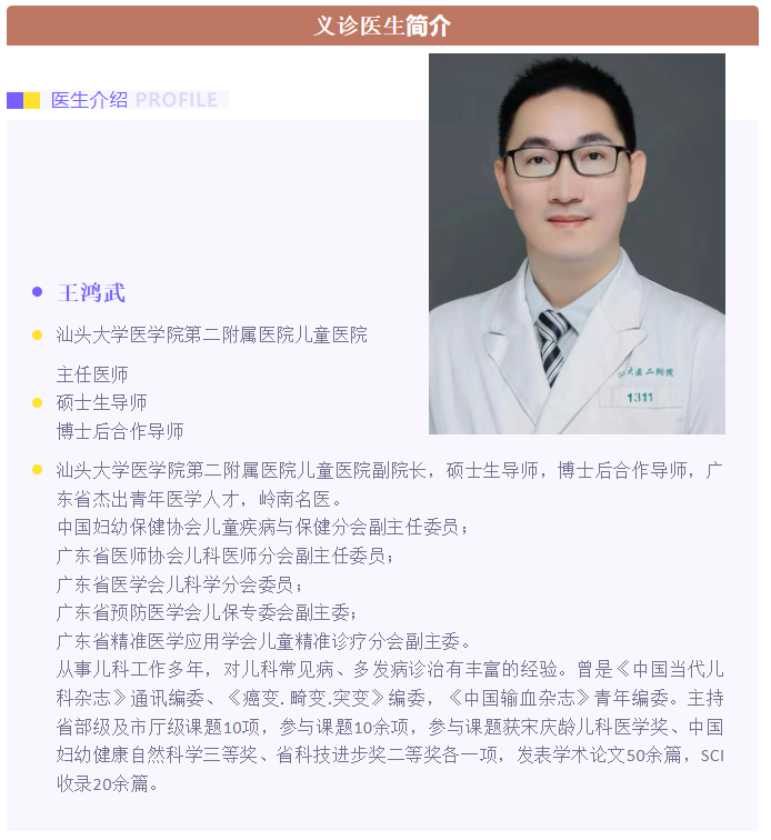 注:生长发育专科需要较长的看诊时间,不接受现场报名(限号15名)如报名孩子较多,后台会筛选出符合矮小条件的孩子优先获得名额,义诊前2天会在梧桐小程序上推送信息给获得名额的家长。请以往检查过的患儿家长带上病历、化验单、骨龄片等全套资料就诊。