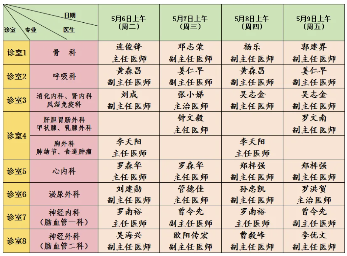 专科门诊部排班表