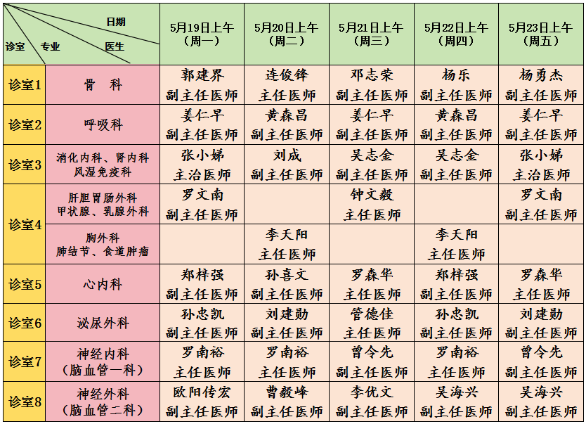 专科门诊部排班表(医技楼三楼)↓