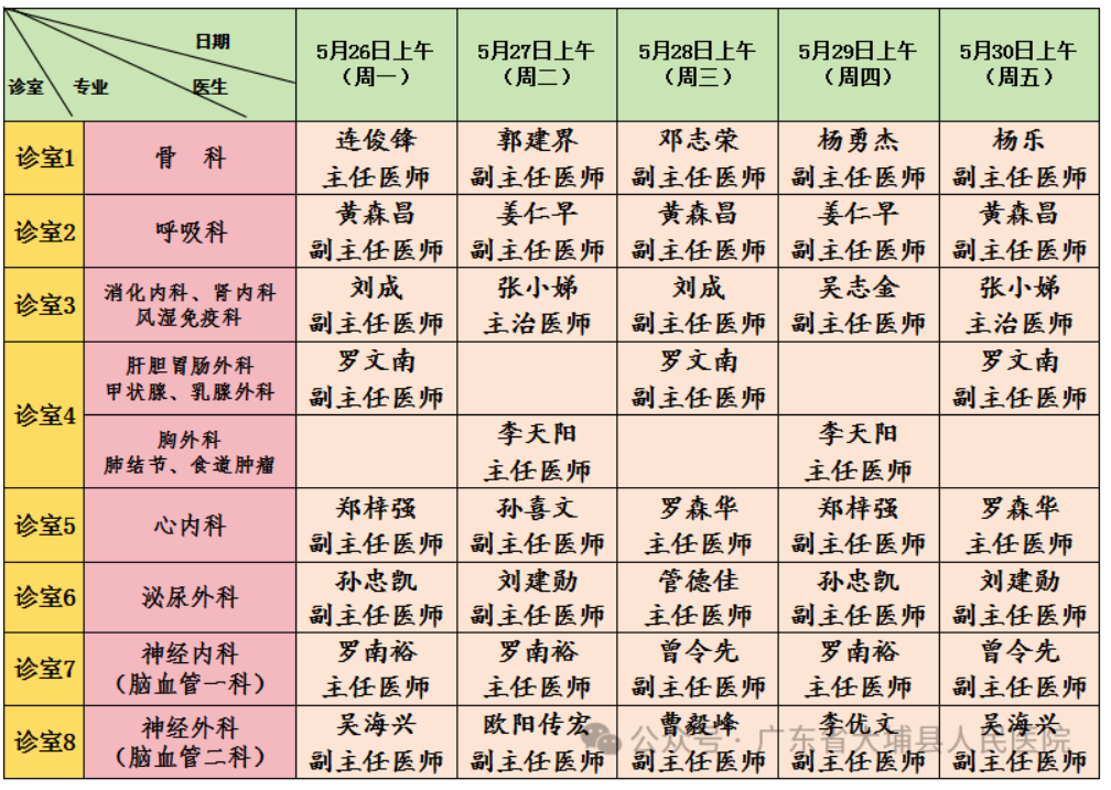 ★具体出诊以当天实际为准,如有变动会及时在现场挂号处及微信服务号、小程序的挂号服务内进行更改。