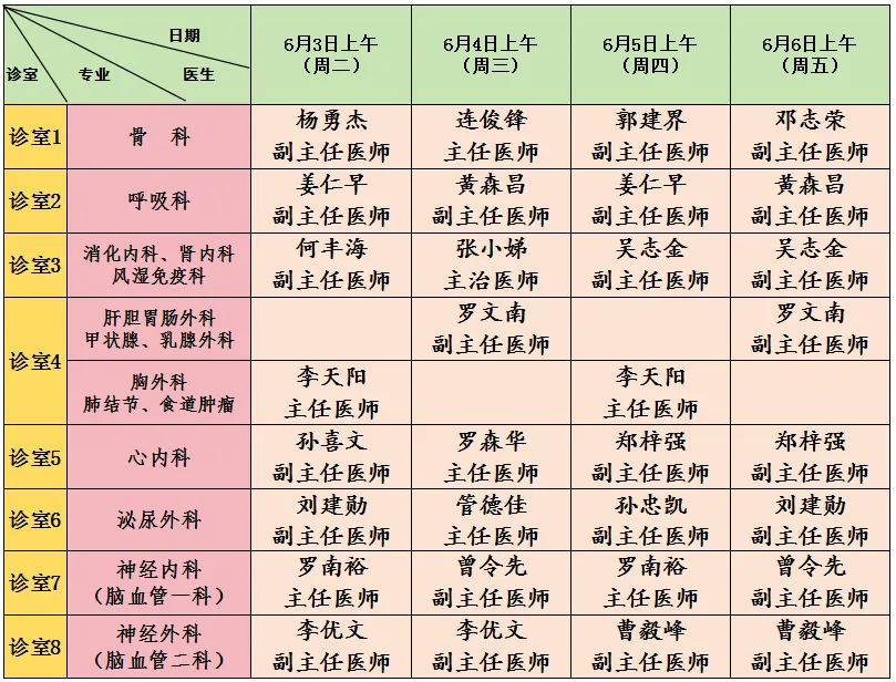 专科门诊部排班表