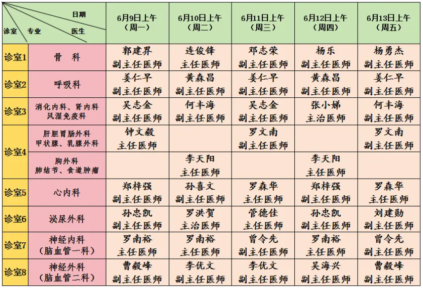 ★具体出诊以当天实际为准,如有变动会及时在现场挂号处及微信服务号、小程序的挂号服务内进行更改。