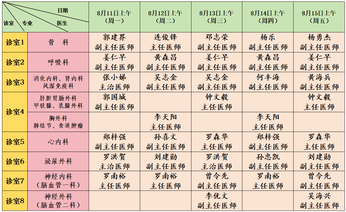 ★具体出诊以当天实际为准,如有变动会及时在现场挂号处及微信服务号、小程序的挂号服务内进行更改。