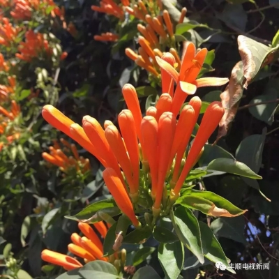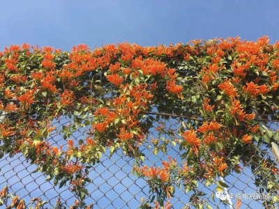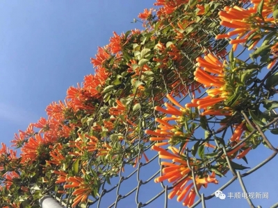 1月8日上午,记者在县文化体育公园看到,大片炮仗花竞相绽放,美艳动人,成为冬日里一抹靓丽的景色。