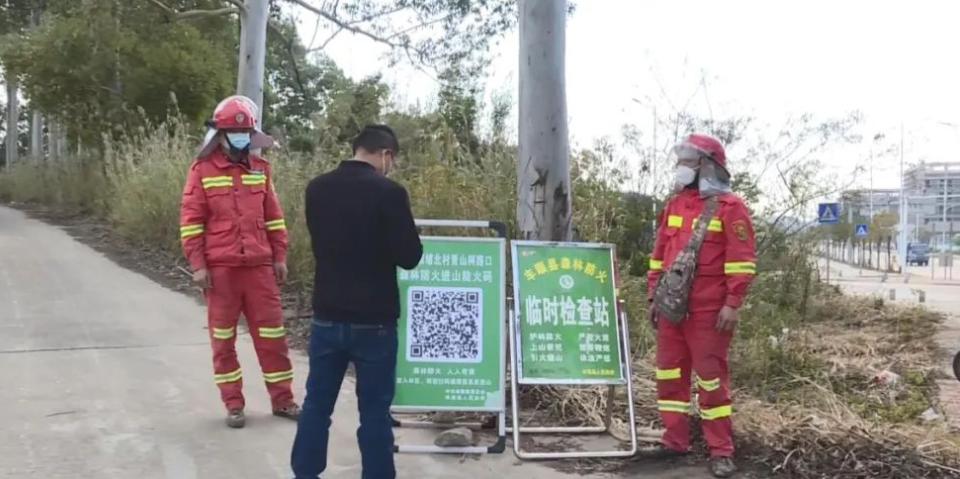1月3日上午,在埔寨镇埔北村大坪路口森林防火临时检查点,记者看到,护林员携带着扑火把穿梭在林区进行全天候巡逻,