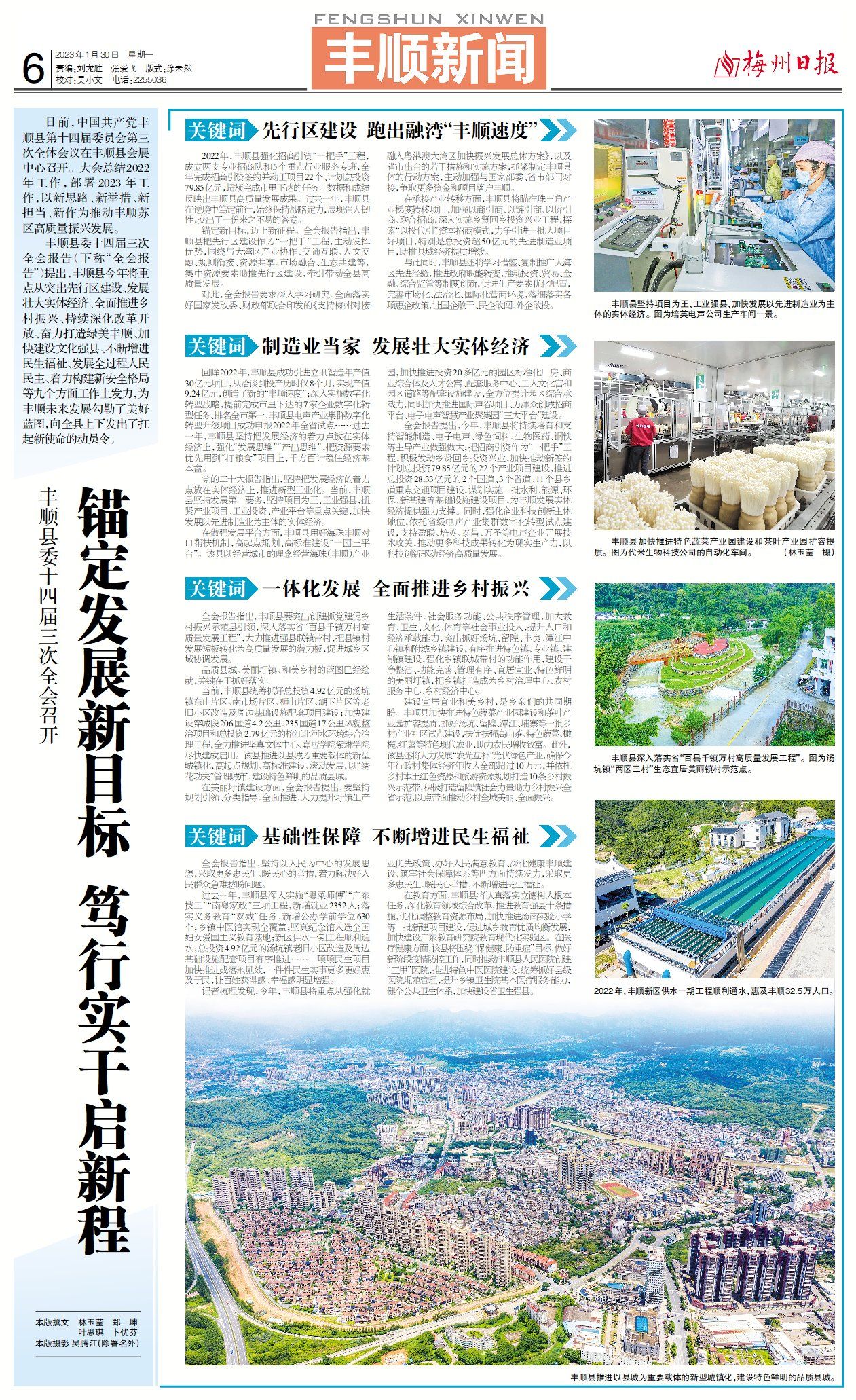 丰顺县委十四届三次全会报告(下称“全会报告”)提出,丰顺县今年将重点从突出先行区建设、发展壮大实体经济、全面推进乡村振兴、持续深化改革开放、奋力打造绿美丰顺、加快建设文化强县、不断增进民生福祉、发展全过程人民民主、着力构建新安全格局等九个方面工作上发力,为丰顺未来发展勾勒了美好蓝图,向全县上下发出了扛起新使命的动员令。