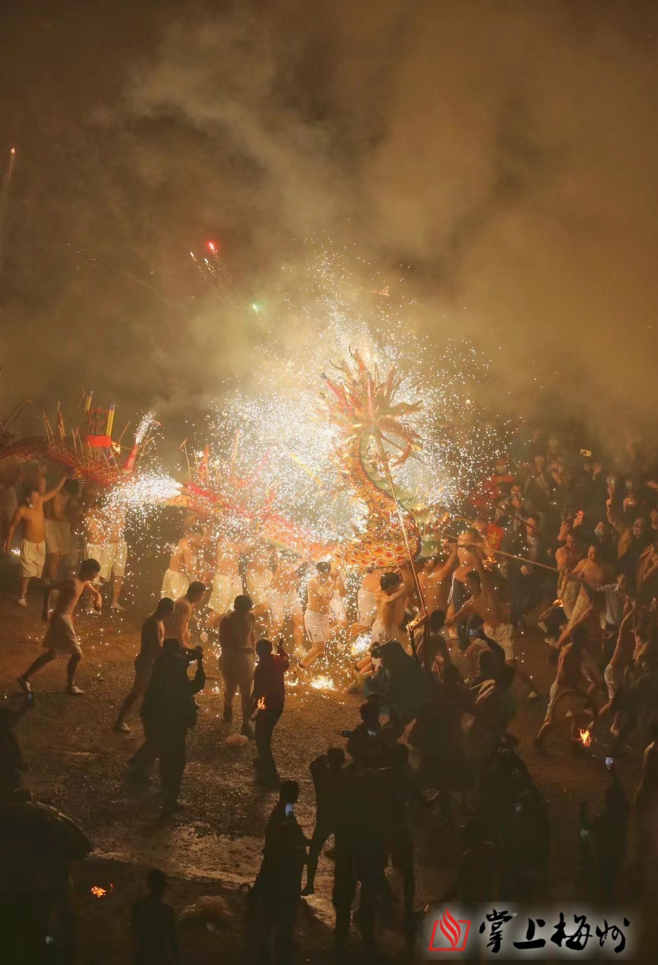 掌上梅州讯 5日晚,国家级非物质文化遗产丰顺埔寨火龙再次震撼上演,吸引了众多来自省内、外地摄影爱好者和游客共赴这场光与火的元宵盛宴,感受火龙表演的魅力。