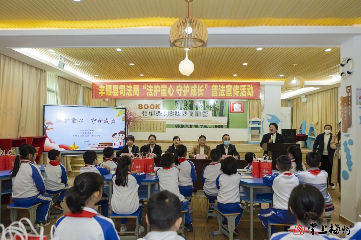 掌上梅州讯 近日,丰顺县司法局、县普法办、汤坑镇第一中心小学联合开展法治宣传活动,用法律守护青少年健康成长。