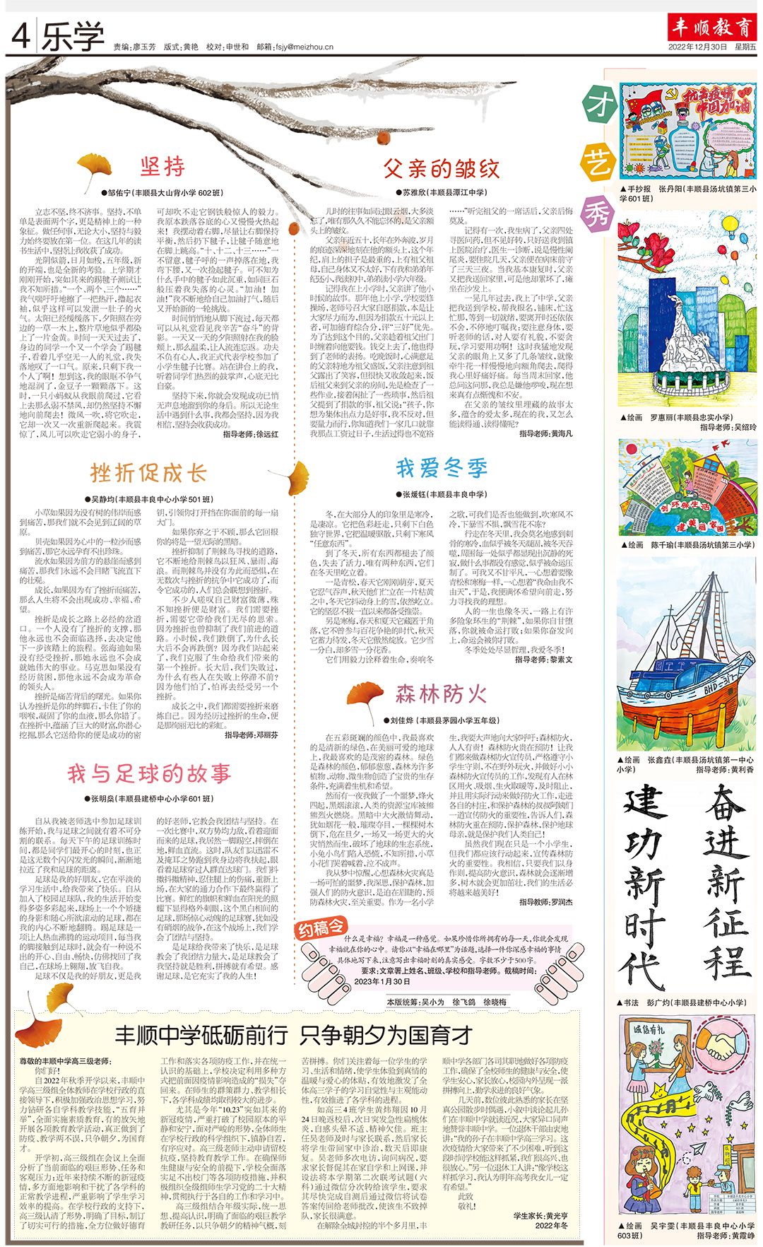 要求:文章署上姓名、班级、学校和指导老师。截稿时间:2023年1月30日