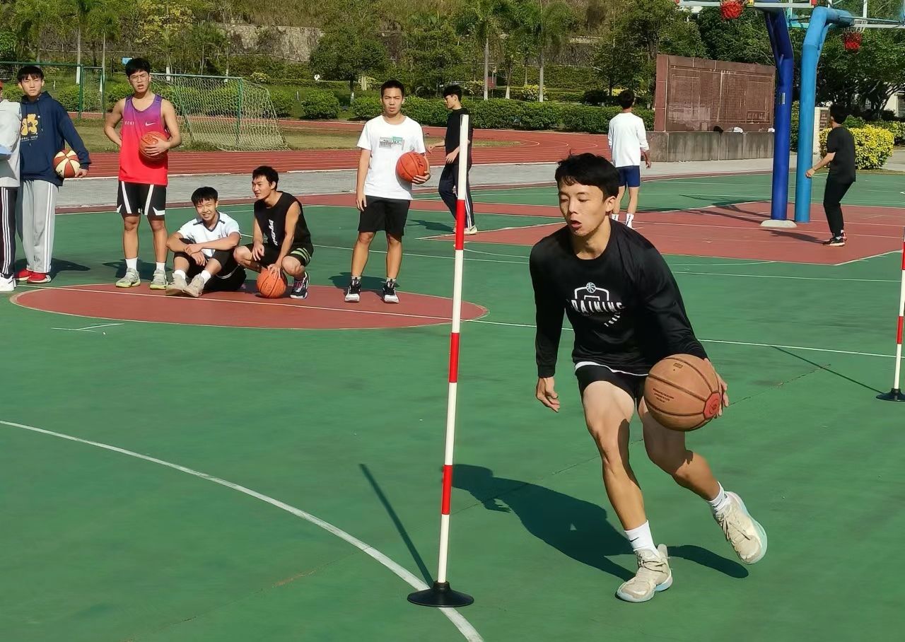 考生测试篮球绕杆定点投篮。(曾志向 摄)