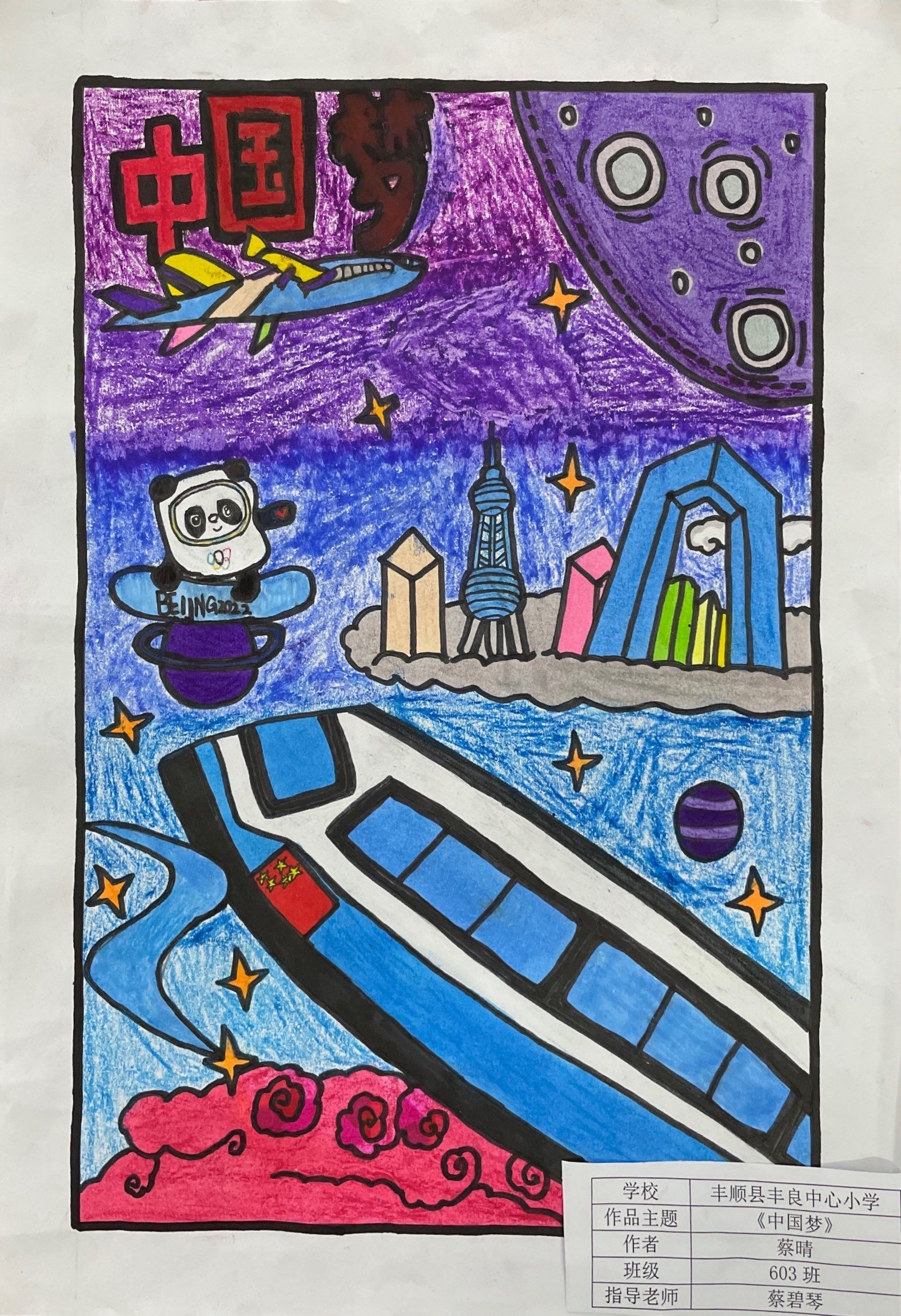 ▲绘画 蔡晴(丰顺县丰良中心小学603班)指导老师:蔡碧琴