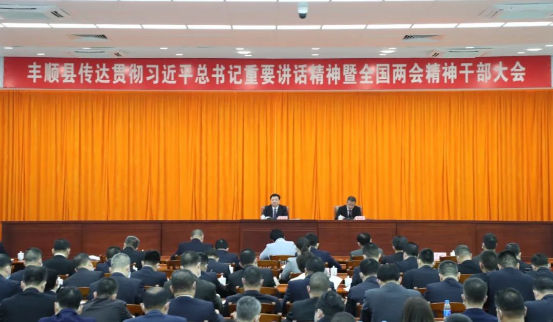 3月16日,丰顺县干部大会召开,传达学习贯彻习近平总书记在全国“两会”上的重要讲话精神和全国“两会”精神,以及全省、全市传达贯彻习近平总书记重要讲话精神暨全国两会精神干部大会精神,对丰顺县贯彻落实工作作出部署安排。丰顺县委书记张志锋主持会议并讲话,县长罗达祥,县人大常委会主任邱翠茂,县政协主席黄建斐出席会议。