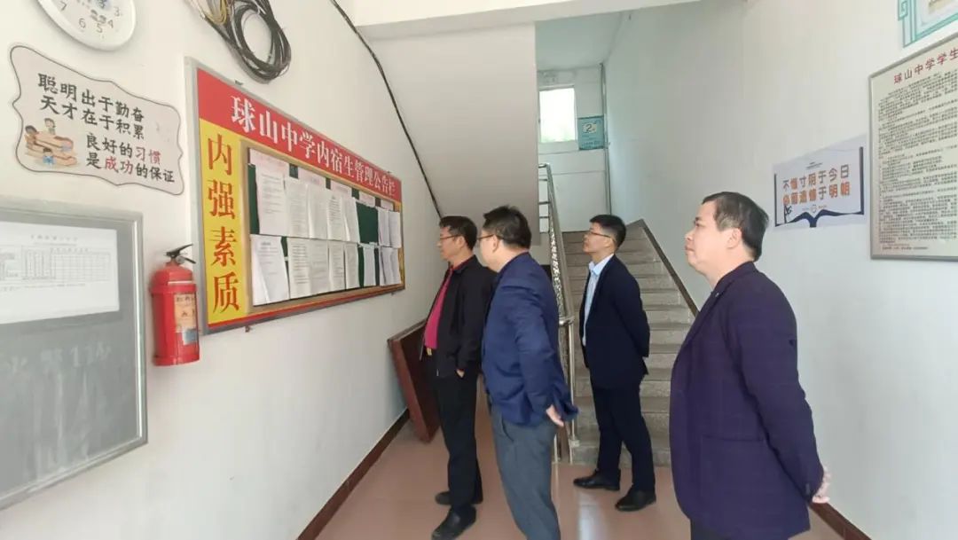 上午九时,李杏玲一行抵达丰顺县球山中学,陈镇源代表学校对市教育局领导和东山中学领导老师的到来表示热烈欢迎,并就学校基础设施、办学情况、教育教学、落实“十四五”规划情况等作了汇报。调研组一行先后参观了老校门、罗子述图书馆、坚真科学馆、教学楼、宿舍楼、幸福食堂等场所。并详细询问了解老师的待遇,学生在学校的学习、生活情况,对学校的德育系统、师德师风宣传、宿舍管理、食堂的自动化等表示肯定,并详细了解学校在办学过程中遇到的困难与亟待解决的问题。东山中学的领导、老师们与球山中学教师亲切交谈,并就常规教学和备考等方面提出宝贵意见,并表示将坚持“教育扶贫,育人为本”的原则,以立德树人为目标,采取结对帮扶的形式,在教育管理、教学等方面为球中提供支持,助力球中师生的成长,努力让每一个学生受到良好的教育。座谈中,李杏玲副局长充分肯定了学校的教研与备考工作,要求学校不断优化管理,提高教师的教研水平,严抓课堂教学质量,做好学生的培优辅差、心理疏导、体育锻炼等工作。李杏玲强调“乡村振兴,教育先行”的必要性,就如何因地制宜,结合乡贤校友资源,根据学校具体情况开展教育教学工作,希望学校求索创新,不断创造更加优异的教育教学成绩,推进乡村中学教育高质量发展,以优异的成绩向家长和社会交出满意的答卷。