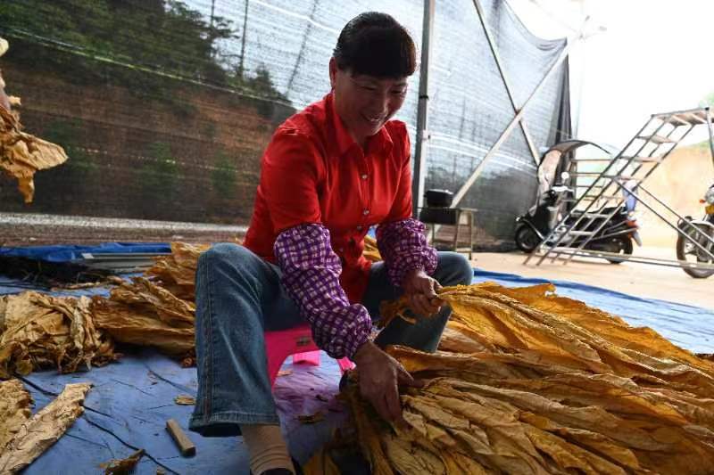 陈姨是刘仪庆雇来帮工的工人之一,对于这份工作,她非常满意,她说:“有空我就过来做工,家里有事就不过来了,在家门口做事太方便了,不但多了份收入,也锻炼了身体,学到了技术,明年如果政策允许,我也想种一些烤烟”。通过种植烤烟,不仅刘仪庆本人增加了收入,也带动了周边村民通过土地流转、家门口灵活务工等方式增收,根据刘仪庆测算,他今年预计要支付30余万元的工资给村民们,不但解决了农村剩余劳动力就业问题,也让村民们学会了烤烟种植技术,实现了造血功能,拓宽了周边群众的致富路。