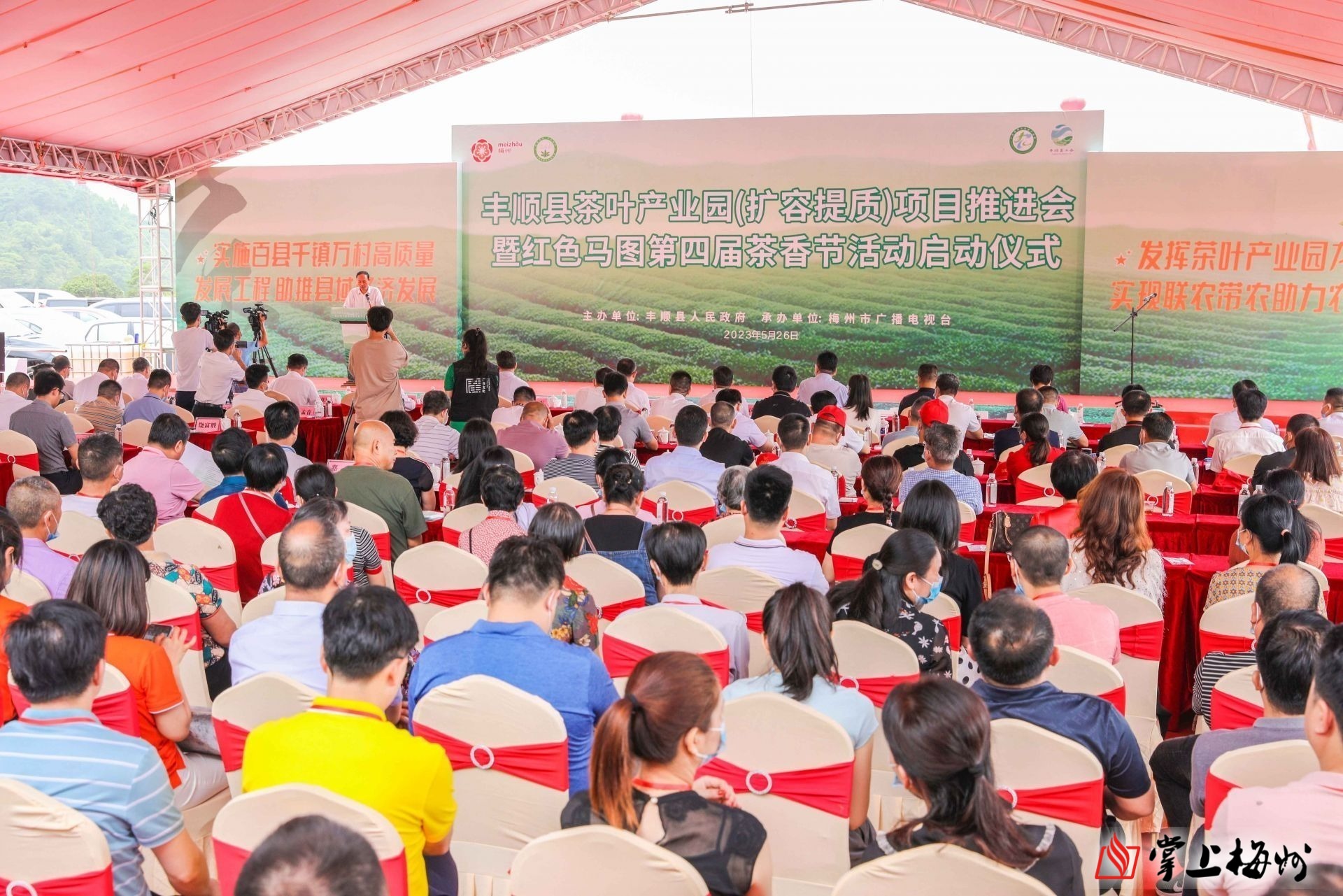 掌上梅州讯 5月26日,丰顺县茶叶产业园(扩容提质)项目推进会暨红色马图第四届茶香节活动启动仪式在丰顺县龙岗镇马图村举行。梅州市委常委、副市长赵东,丰顺县委书记张志锋,丰顺县委副书记、县长罗达祥出席活动。