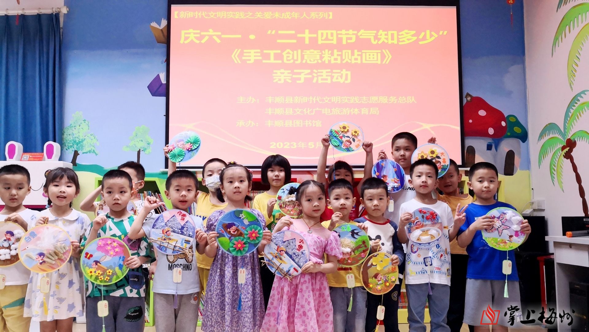 掌上梅州讯 5月27日,丰顺县新时代文明实践之关爱未成年人系列庆六一•“二十四节气知多少”《手工创意粘贴画》亲子活动在丰顺县图书馆少儿阅览室举行,活动共有16组家庭参与。