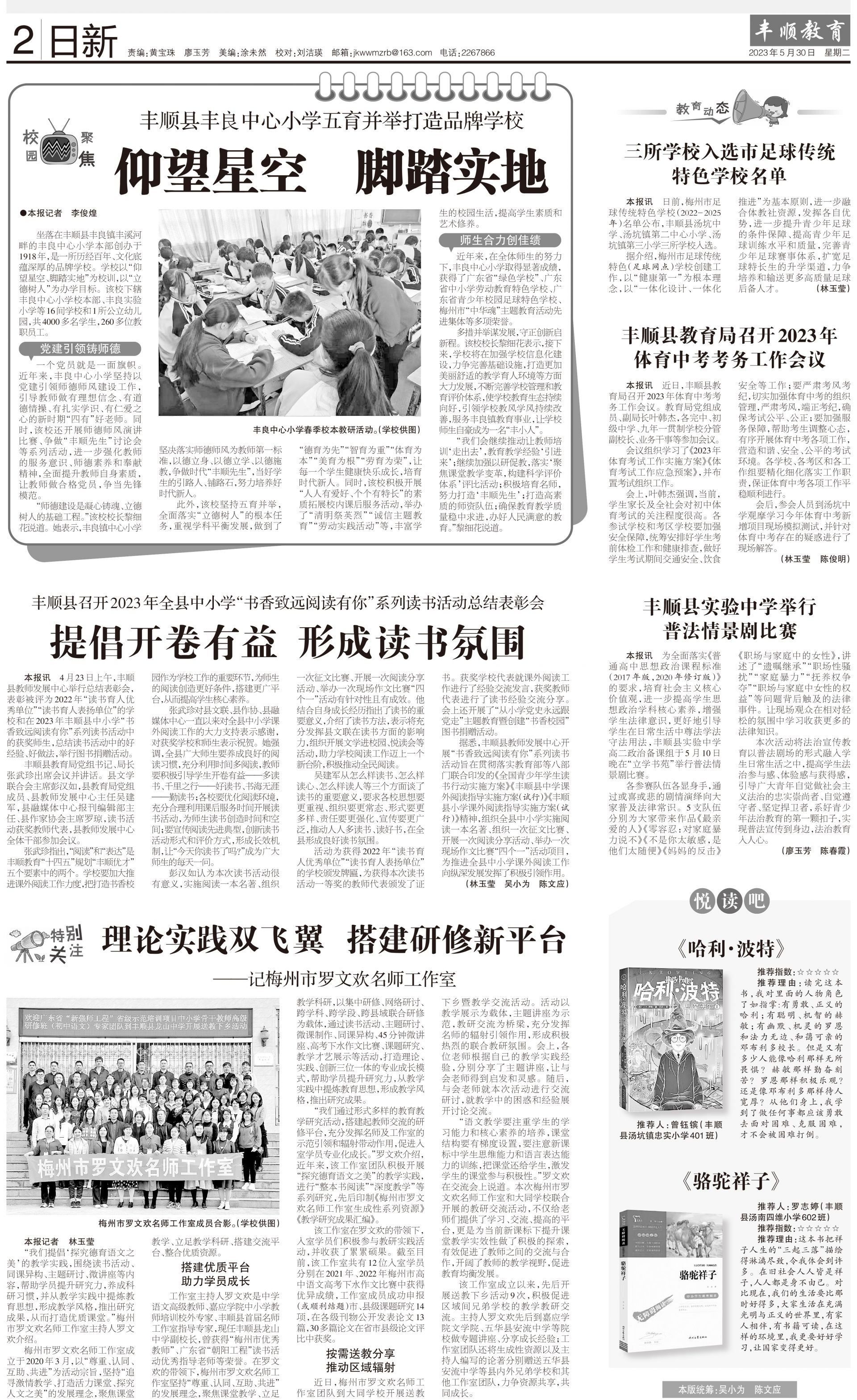 据悉,丰顺县教师发展中心开展“书香致远阅读有你”系列读书活动旨在贯彻落实教育部等八部门联合印发的《全国青少年学生读书行动实施方案》《丰顺县中学课外阅读指导实施方案(试行)》《丰顺县小学课外阅读指导实施方案(试行)》精神,组织全县中小学实施阅读一本名著、组织一次征文比赛、开展一次阅读分享活动、举办一次现场作文比赛“四个一”活动项目,为推进全县中小学课外阅读工作向纵深发展发挥了积极引领作用。(林玉莹 吴小为 陈文应)