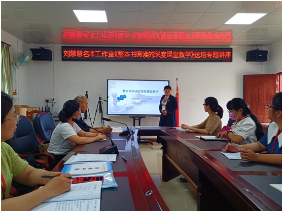 围绕名著阅读教学中的困惑,工作室主持人刘慧慧给工作室入室学员和三友中学全体语文老师作了一场题为《整本书阅读的深度课堂教学》的讲座。刘慧慧指出,教师指导第四学段(7-9年级)学生的名著阅读应该立足新课标、立足学情、任务驱动;还要确定整本书阅读的预期结果,建构差别化、个性化的策略体系;同时要注重整本书阅读的学习体验和教学方法。讲座中,刘慧慧还以自己的教学实例,详细讲解了名著阅读教学中阅读计划设置的重要性和整本书阅读“导读课”“促读课”“展示课”的课型探索。讲座既有理论高度又有实践智慧,引发大家对名著阅读教学的思索和探究。