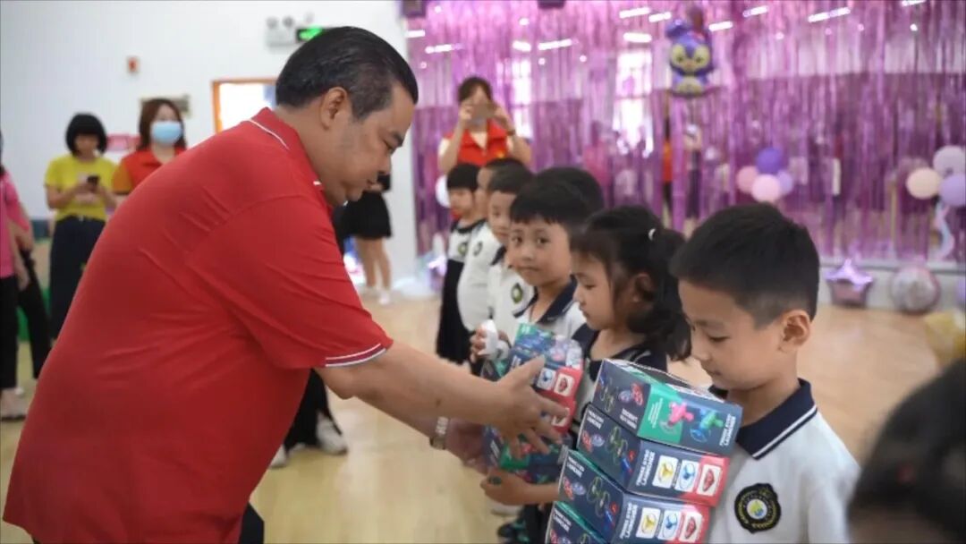 期间,汤坑镇和汤泉社区有关负责人还为小朋友们派送了节日礼物。