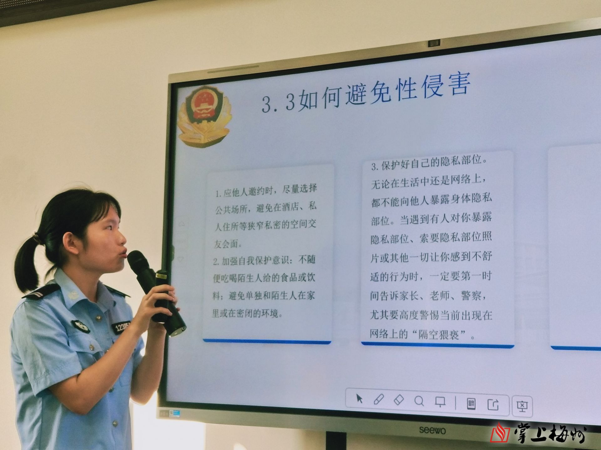 在开展普法教育活动中,丰顺县公安局民警从“防诈骗、防拐卖、防性侵”三个方面,结合办理过的典型案例,运用现场发放宣传资料、通俗易懂的理论讲述、观看普法视频、互动提问等方式,给同学们上了一堂生动的普法教育课。同学们在轻松愉快的课堂中掌握了一定的法律知识,帮助他们增强法律意识和自我保护意识,收到了预期的效果。