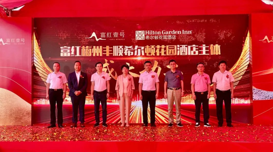 7月8日上午,富红梅州丰顺希尔顿花园酒店主体动工仪式在富红壹号营销中心举行。丰顺县委常委、统战部部长廖月芝,县委常委、宣传部部长古孟青,副县长李吉祥,县政协副主席陈新化,希尔顿大中华区副总裁陈宝柱,富红集团董事长陈富柱等参加活动。