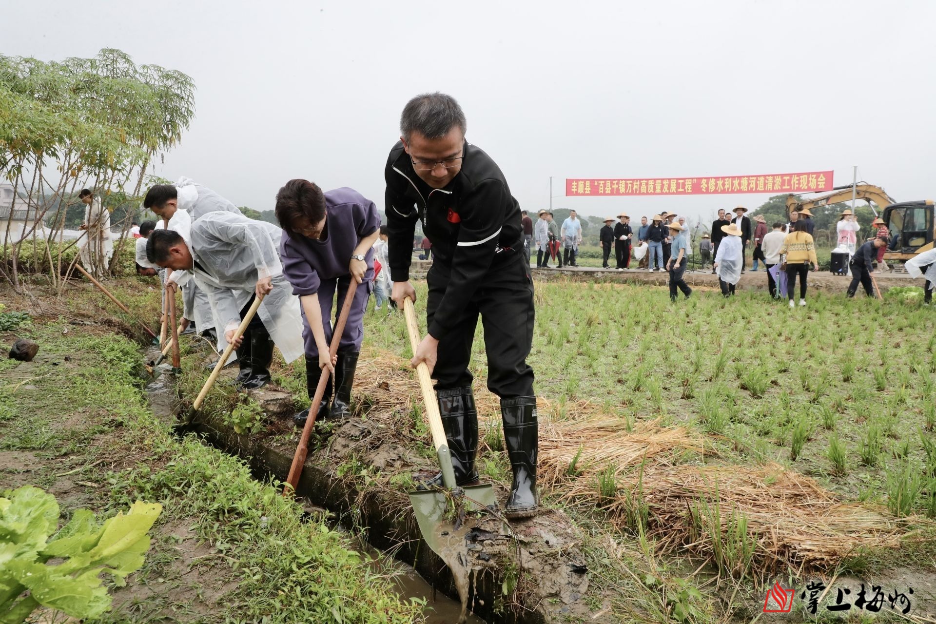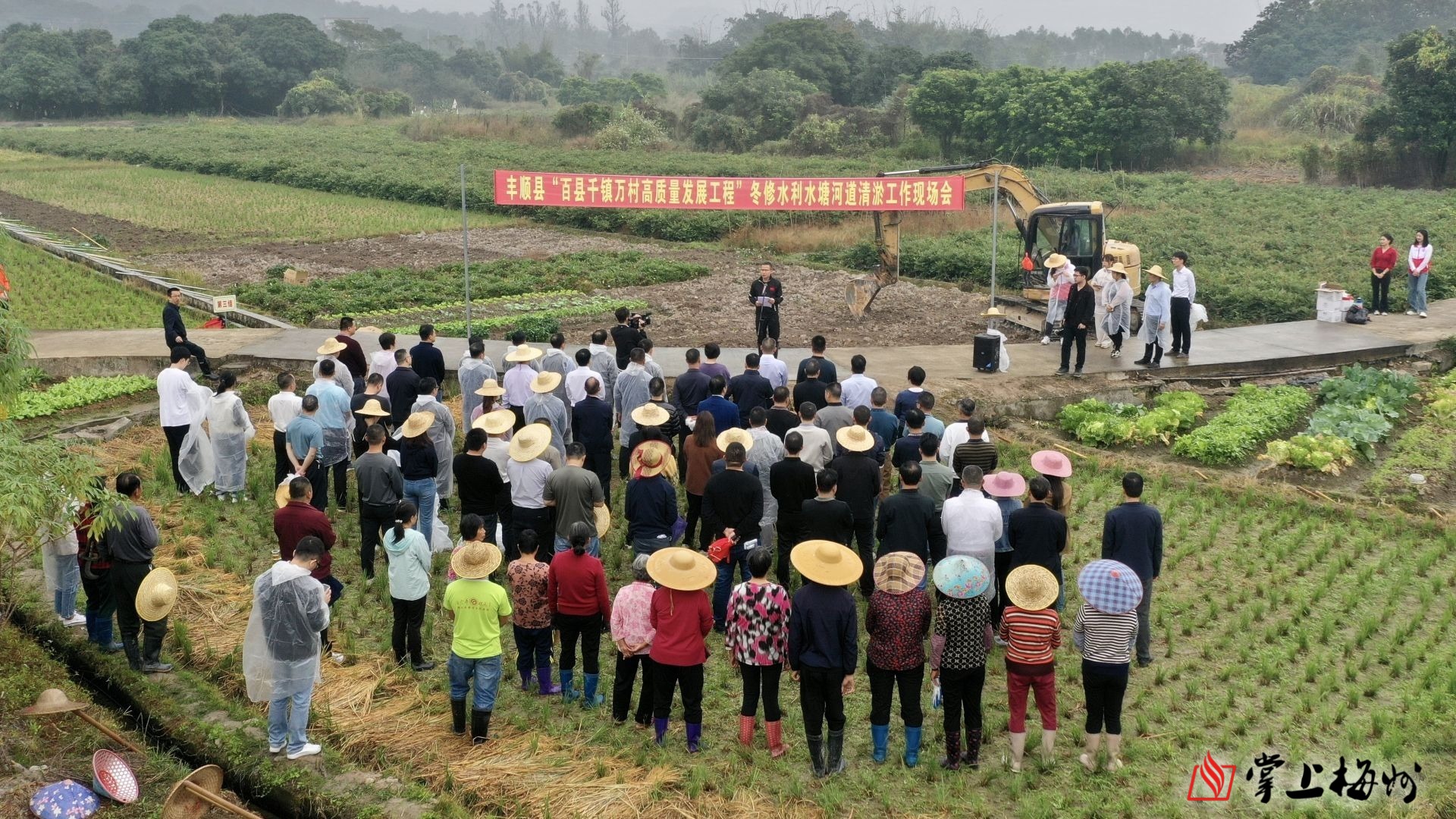 掌上梅州讯 12月15日上午,丰顺县举行“百县千镇万村高质量发展工程”冬修水利水塘河道清淤工作现场会,组织群众开展水利设施修葺和清淤疏浚,保障来年春耕灌溉和防洪度汛。