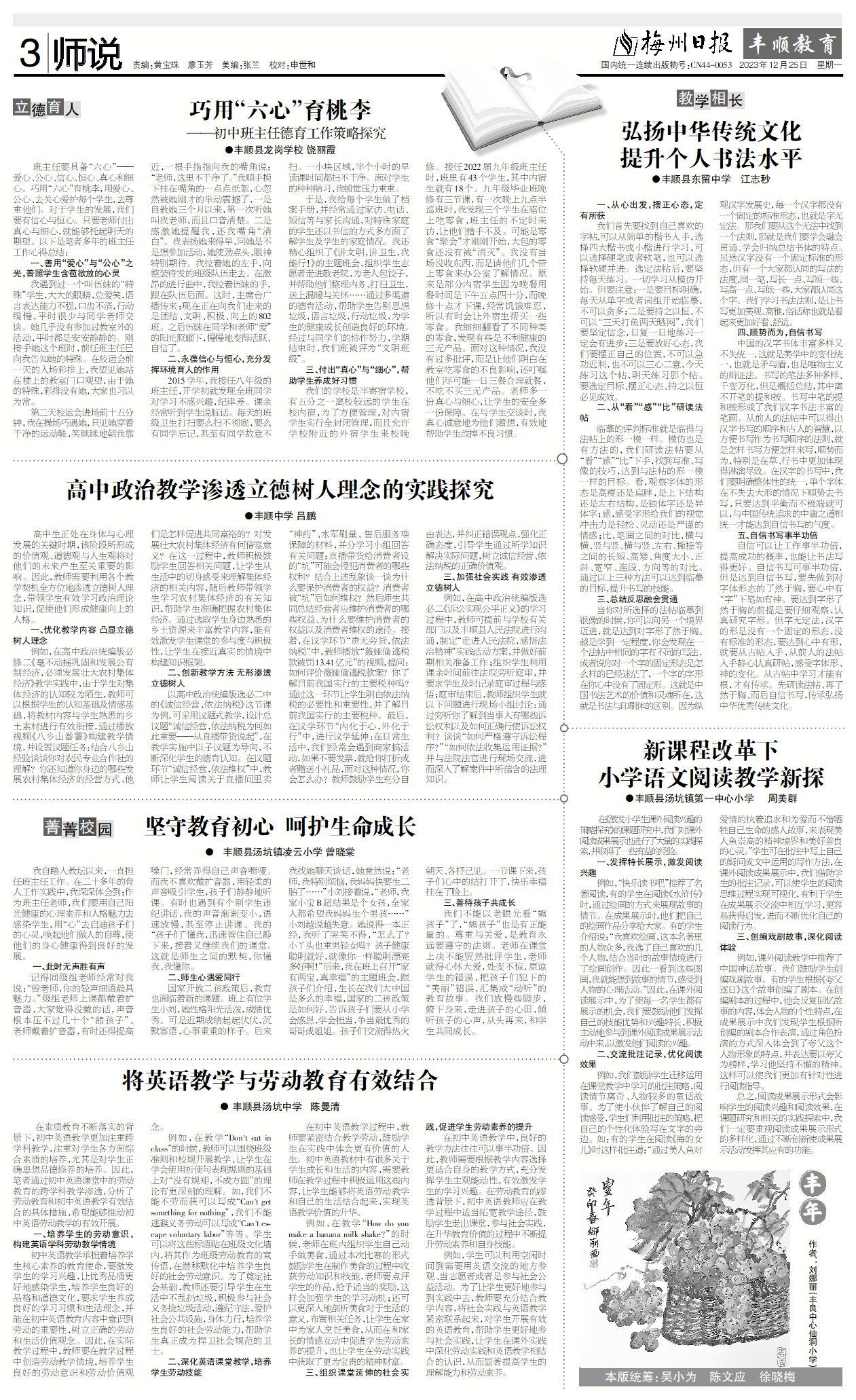 在素质教育不断落实的背景下,初中英语教学更加注重跨学科教学,注重对学生各方面综合素质的培养,尤其是对学生正确思想品德修养的培养。因此,笔者通过初中英语课堂中的劳动教育的跨学科教学渗透,分析了劳动教育和初中英语教学有效结合的具体措施,希望能够推动初中英语劳动教学的有效开展。