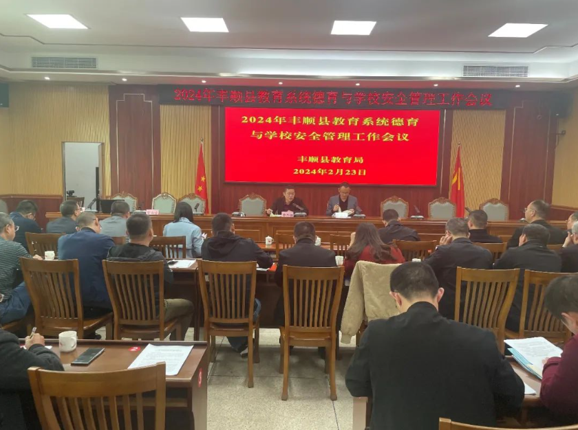 2024年2月23日上午,丰顺县教育局在十楼会议室召开2024年丰顺县教育系统德育与学校安全管理工作会议。县委教育工委委员、县教育局党组成员、副局长李万福,德安股全体人员、各学校(县直属幼儿园)分管德育安全工作的副校(园)长等60多人参加会议。会议由县教育局德育与学校安全管理股负责人李润彬主持。