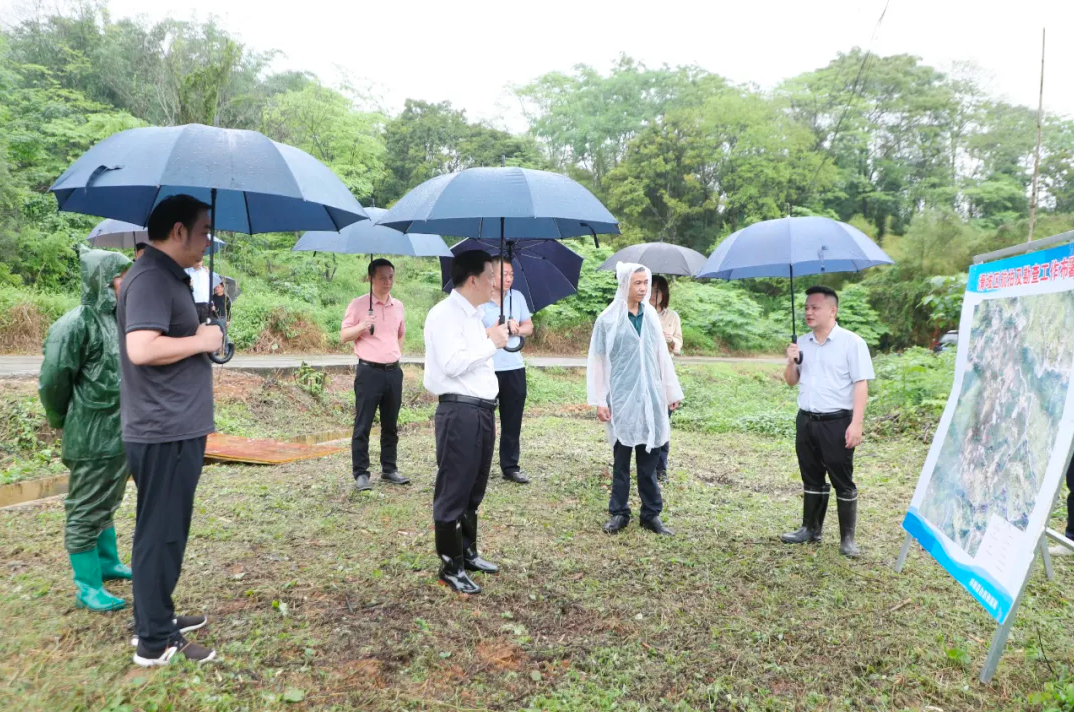 图为县委书记张志锋在小胜镇三坑村滑坡群特大型地质灾害点检查督导地质灾害防治