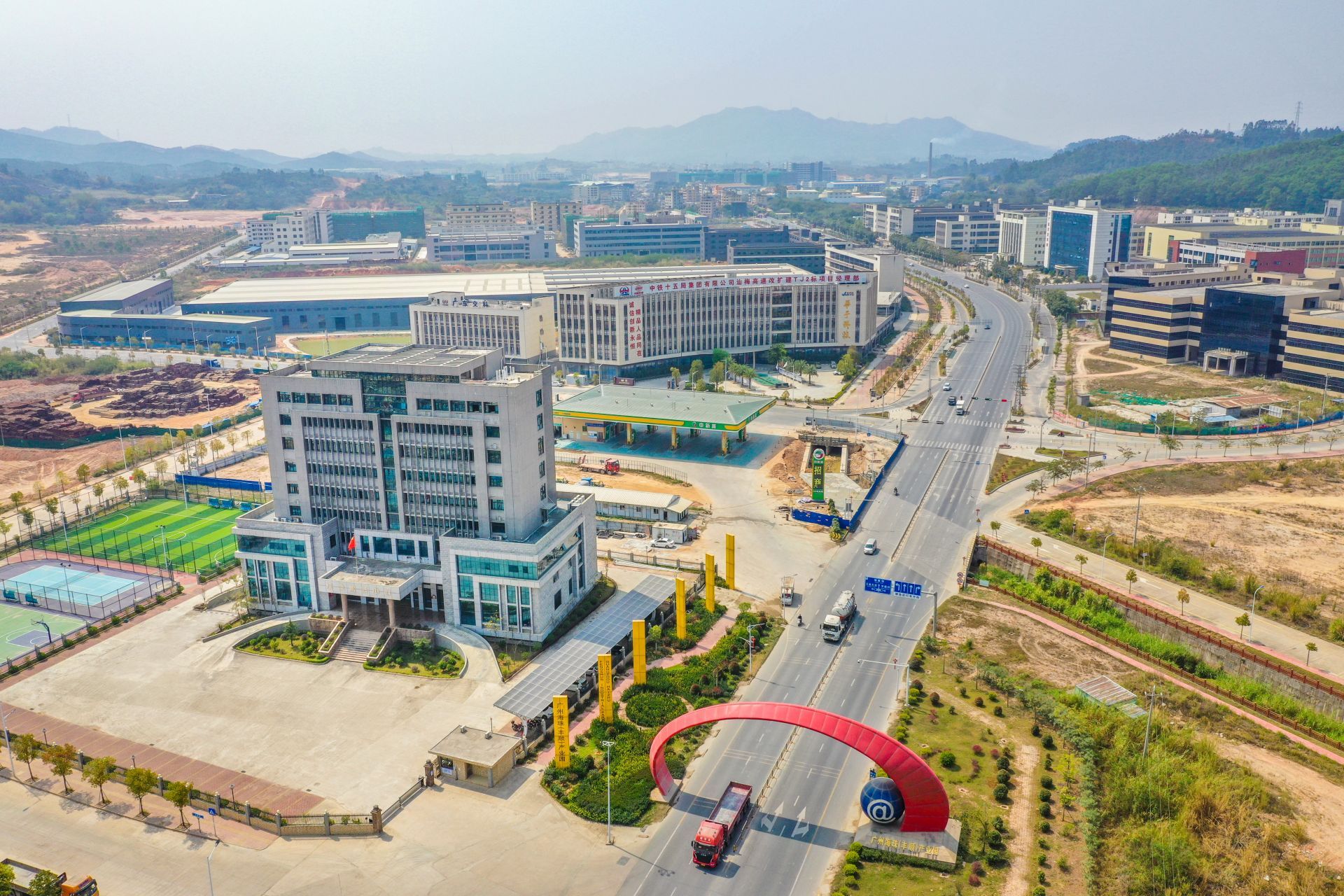 塔吊挥舞着长臂、施工人员忙碌作业、运输车辆穿梭……在广州海珠(丰顺)产业转移工业园施工现场,一派繁忙而有序的景象。