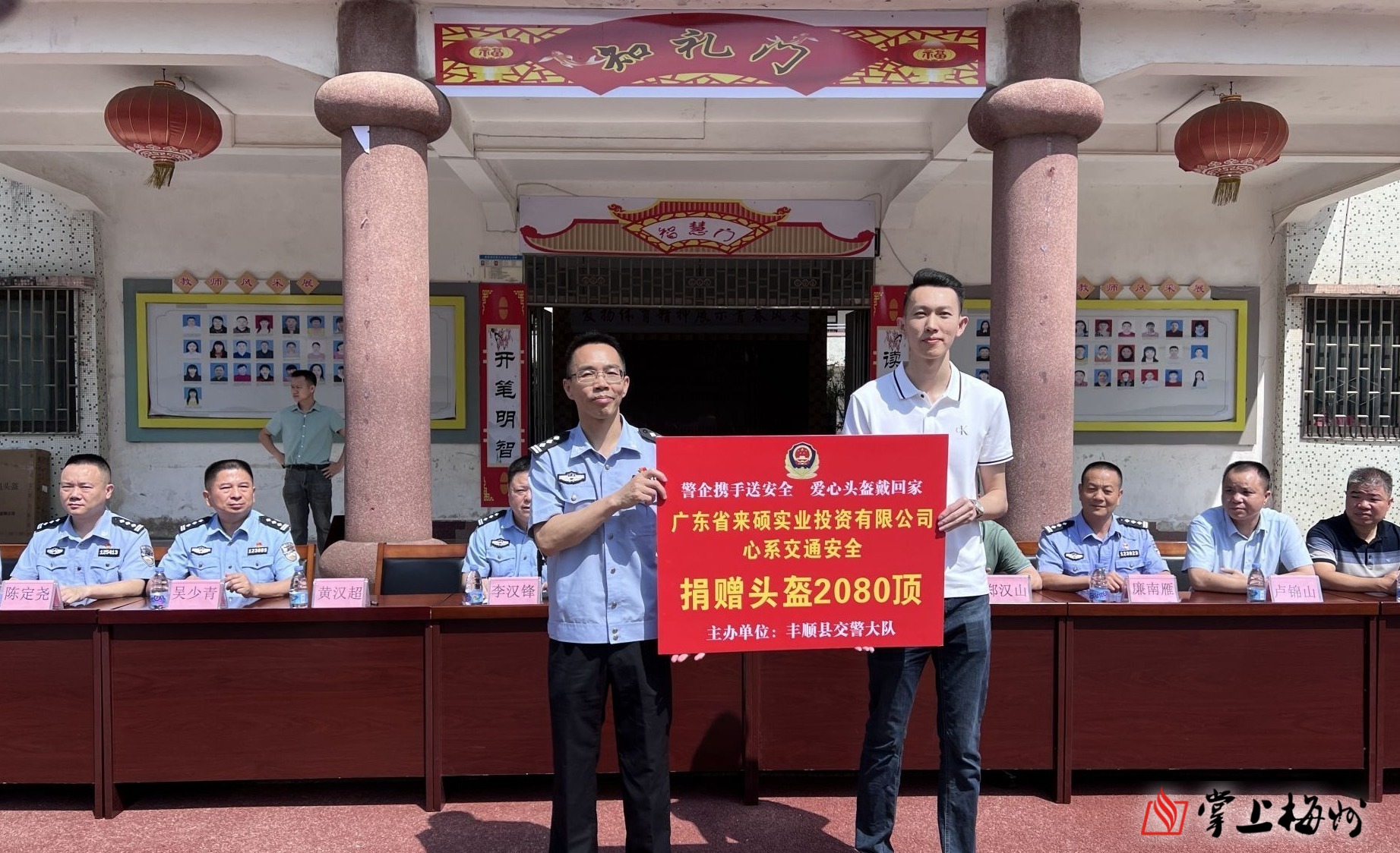 掌上梅州讯 5月14日,丰顺交警携手广东来硕实业投资有限公司在汤西中心小学举行“一盔一带”安全守护行动安全头盔捐赠仪式,旨在进一步倡导文明交通安全理念,引导学生及广大电动车骑乘人员自觉佩戴安全头盔,营造安全、有序、畅通的道路交通环境。