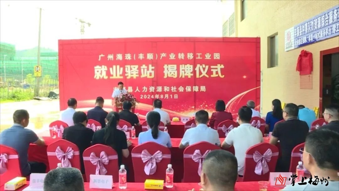 掌上梅州讯 8月1日上午,广州海珠(丰顺)产业转移工业园就业驿站揭牌成立,标志着我县将就业服务延伸到群众“家门口”,将就业领域的惠企稳岗政策送到企业“厂门口”,打通了就业服务“最后一公里”。副县长罗灏出席揭牌仪式。