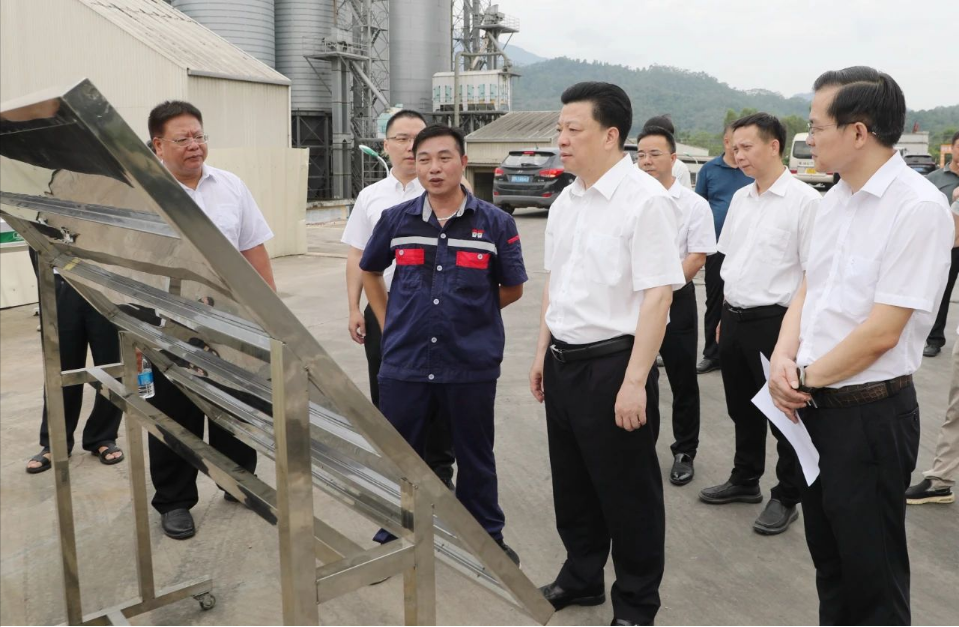 图为丰顺县委书记张志锋率队到梅州双胞胎饲料有限公司调研