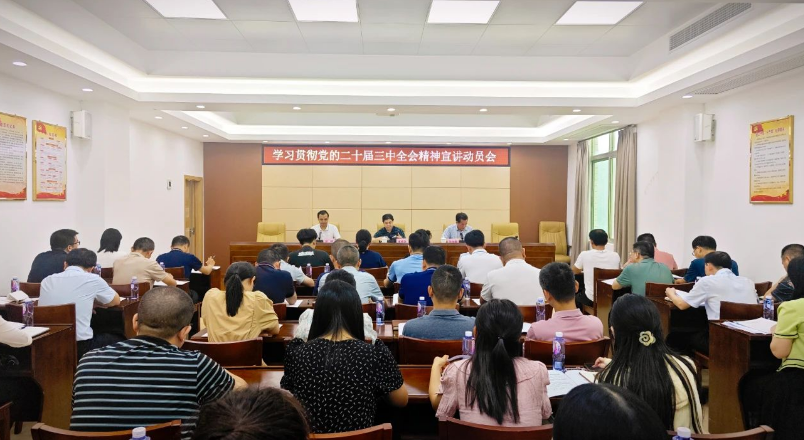 8月14日下午,丰顺县召开学习贯彻党的二十届三中全会精神宣讲动员会。县委宣讲团部分成员、县直有关单位负责同志、各镇(场)党委宣传委员共50多人参加会议。