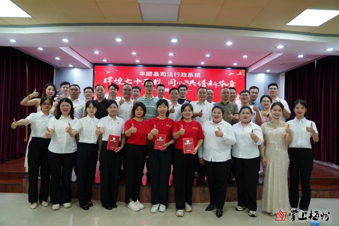 掌上梅州讯 为热烈庆祝中华人民共和国成立75 周年,9月30日,丰顺县司法局举行“辉煌七十五载 同心共谱新华章”主题活动。司法行政干警们通过丰富多样的节目形式将爱国情怀唱出来、演出来,歌颂党的丰功伟绩,表达对祖国的深情与热爱。
