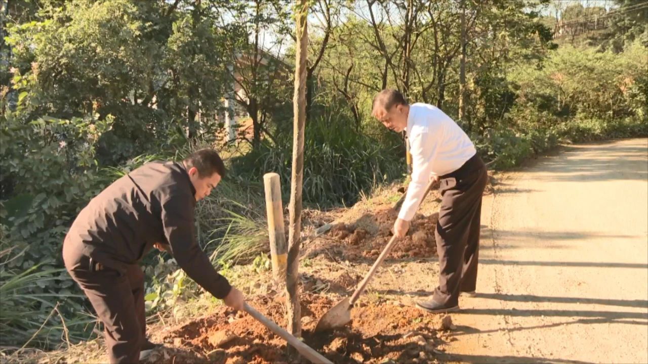 在北斗镇拾荷村植树点,丰顺县政协领导和党员干部及志愿者共同开展植树活动,活动现场大家一起扶树填坑、挥锹覆土、踏土夯苗,每道工序衔接有序,一排排新栽的树苗昂然挺立,为北斗镇增添了一片新绿、一抹亮色。