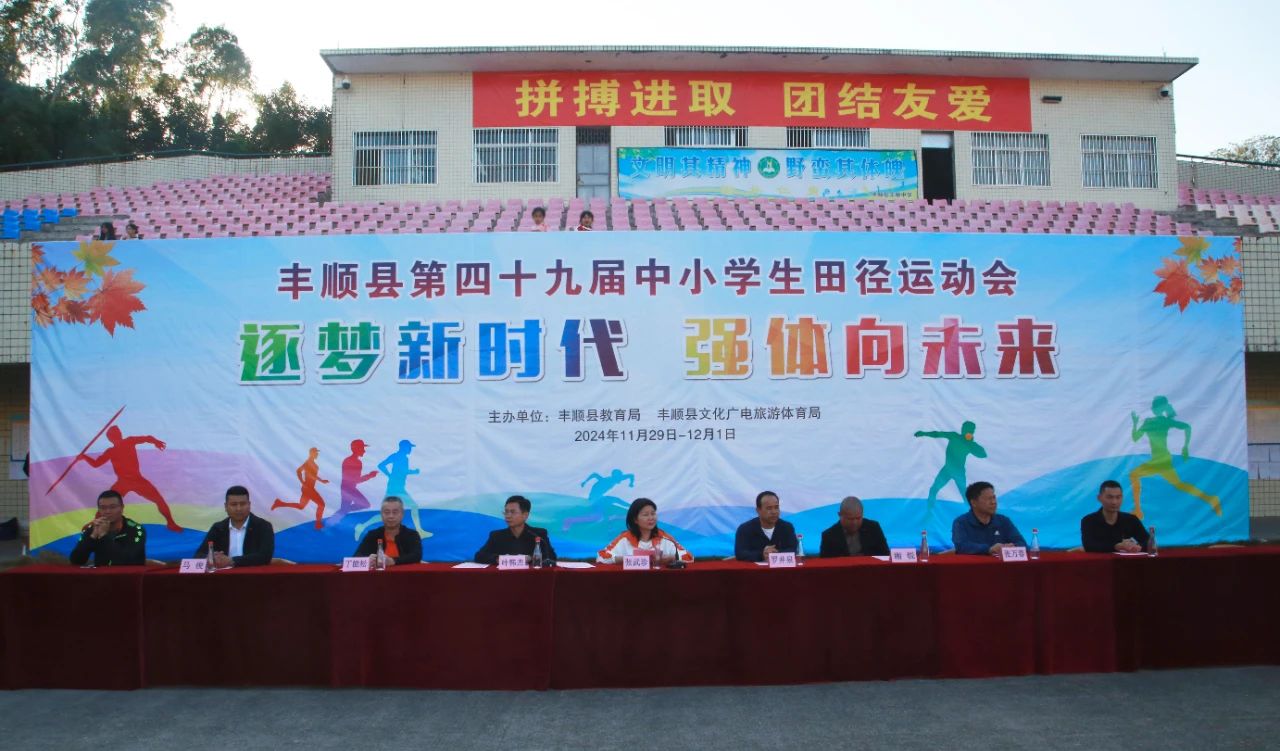 据悉,本届运动会由丰顺县教育局和县文化广电旅游体育局联合主办,以“逐梦新时代 强体向未来”为主题,旨在弘扬体育精神,激发学生运动热情,促进体育教育事业高质量发展,全县47所中小学代表队664名运动员,参加8个组别94个小项的角逐。