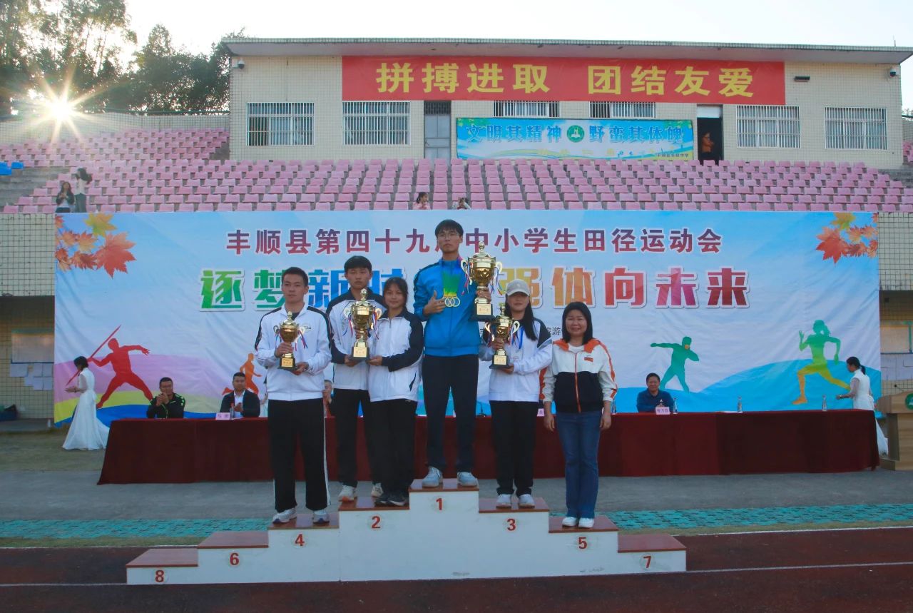 12月1日,丰顺县第四十九届中小学生田径运动会在丰顺中学闭幕。经过三天的激烈角逐,本届运动会共有9人次打破7项纪录。